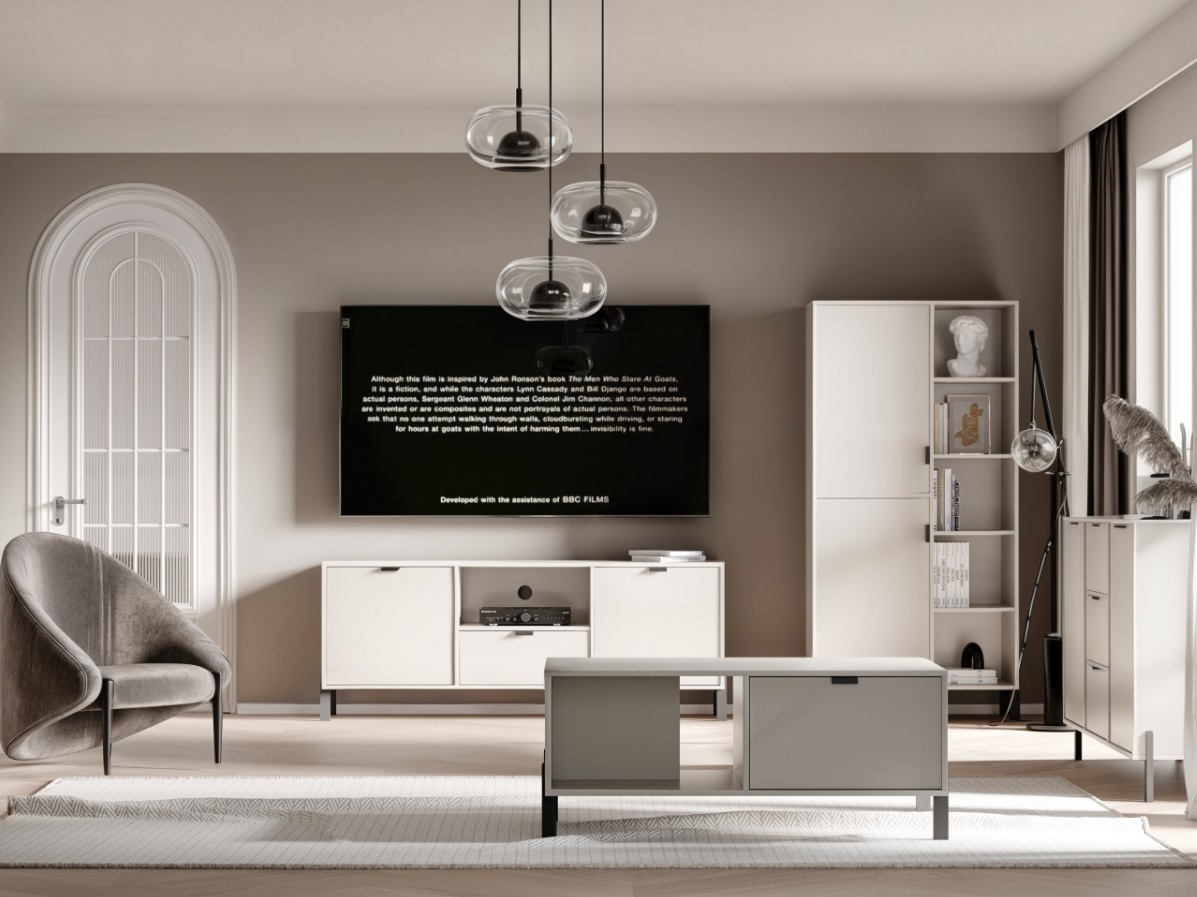 Pre vytvorenie prirodzeného, útulného a pokojného interiéru, ktorý podporuje relaxáciu, je nábytok CREMONA tou ideálnou voľbou. Jeho svetlé farebné prevedenie v tóne cashmere prináša príjemnú atmosféru, ktorú dopĺňajú elegantné čierne úchytky a vysoké nohy, dodávajúce nábytku jedinečný štýl.