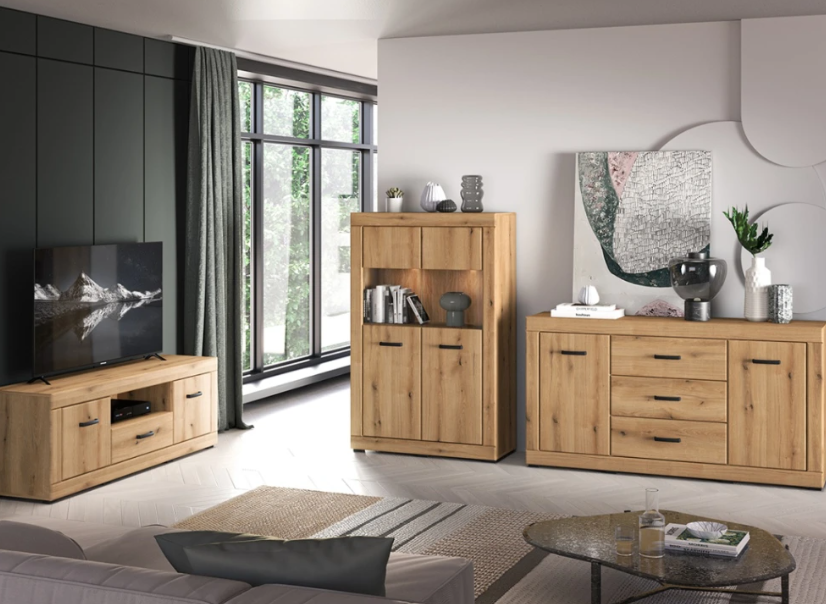 Kolekcia DARIA je stvorená pre tých, ktorí hľadajú štýlovú obývačku s nádychom elegancie a pohody. Jemne zaoblené línie , prírodný dekor Evoke Oak a decentné detaily v čiernej farbe vytvárajú harmonický celok, ktorý pôsobí moderne a zároveň útulne. Kombinácia kvalitného spracovania a premyslených detailov prináša nielen krásu, ale aj komfort do každodenného života.