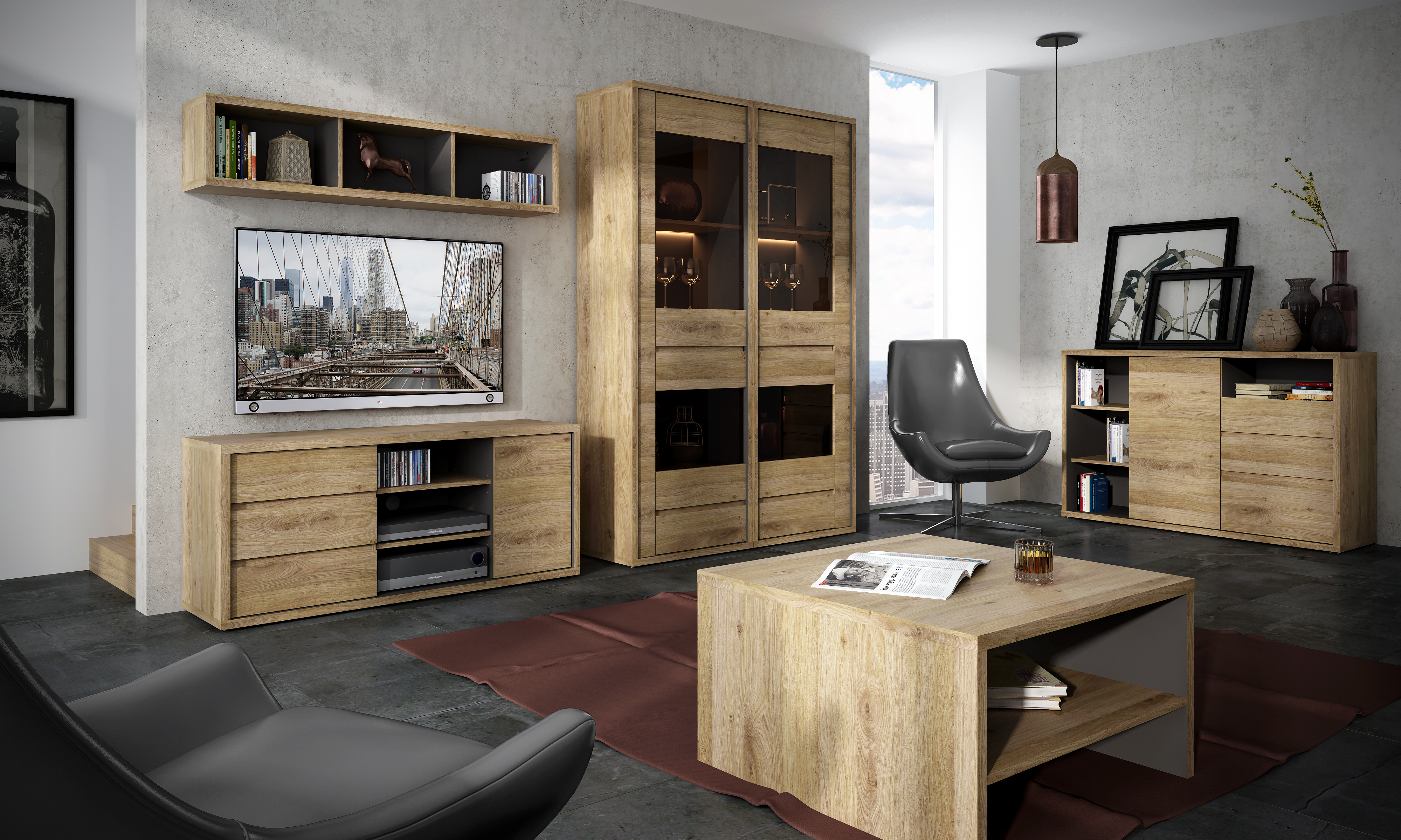 Obývačka je miestnosť, v ktorej sa stretáva celá rodina a spoločne trávi čas. Zariadenie obývačky by malo odrážať váš obľúbený interiérový štýl a poskytovať dostatok úložného priestoru na vaše knihy, elektroniku aj dekorácie. Kvalitný nábytok do obývačky vám vydrží dlhé roky a vytvorí celej vašej rodine podmienky pre dokonalý relax a domácu pohodu. Typické obývačkové zostavy nábytku obsahujú tv stolík, komodu, vitrínu, skrinky, nástenné police a regále. Obývacie steny, v ktorých jednotlivé kusy nábytku spolu ladia, sú výborným základom do každej obývačky. Kvalitná jednofarebná stena do obývačky či zostava nábytku s dreveným dekorom sa ľahko kombinuje so všetkými farbami sedačiek a doplnkov.