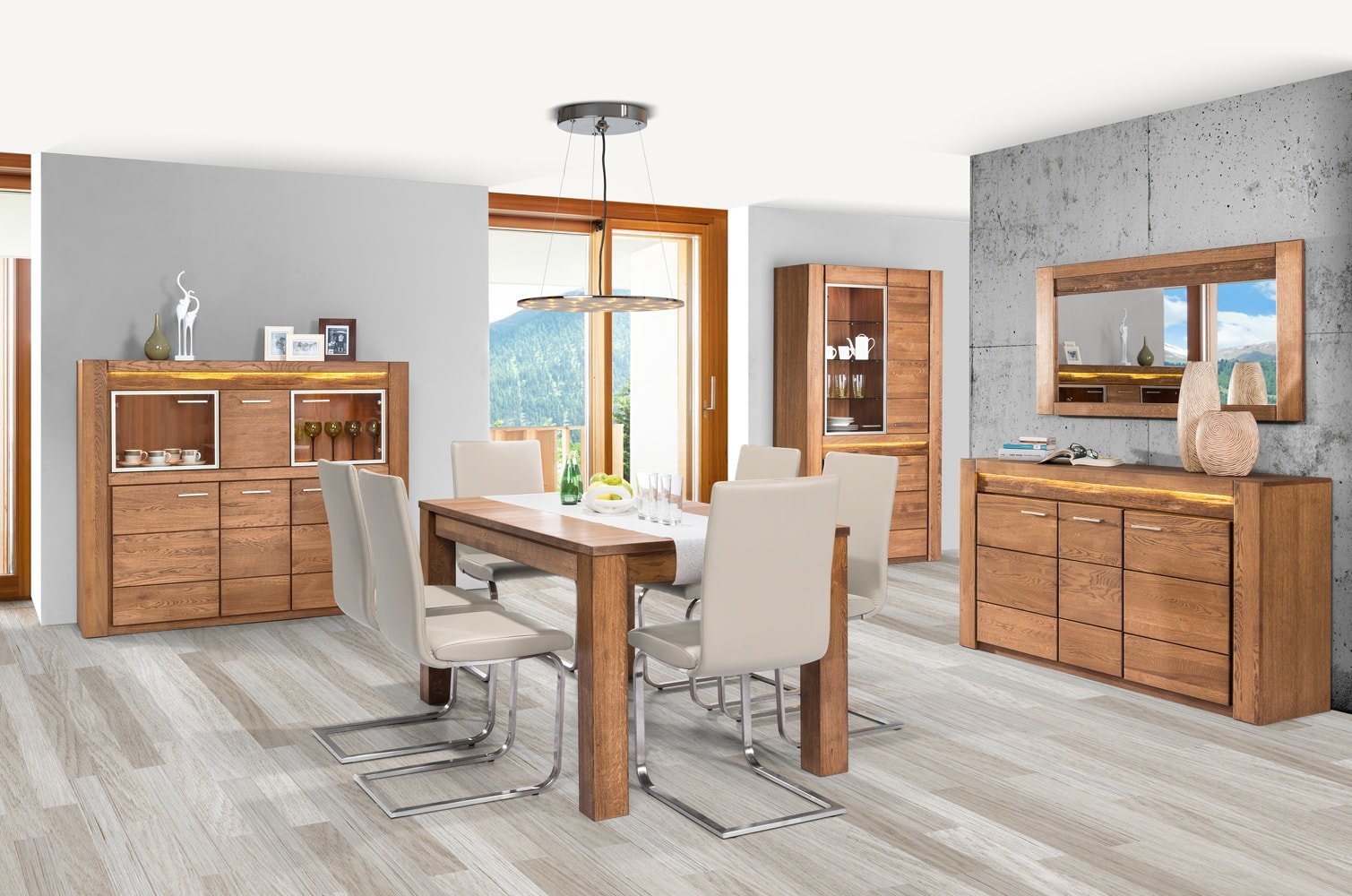 Moderný sektorový nábytok Velvet ponúka najvyššiu kvalitu, originálnu prezentáciu a výnimočný štýl. Dekorácia v podobe masívneho kusu dreva v kombinácií s led osvetlením pôsobí exkluzívne a moderne. Kolekcia má množstvo segmentov, z ktorých si vytvoríte obývaciu izbu, kanceláriu, jedáleň či spálňu.