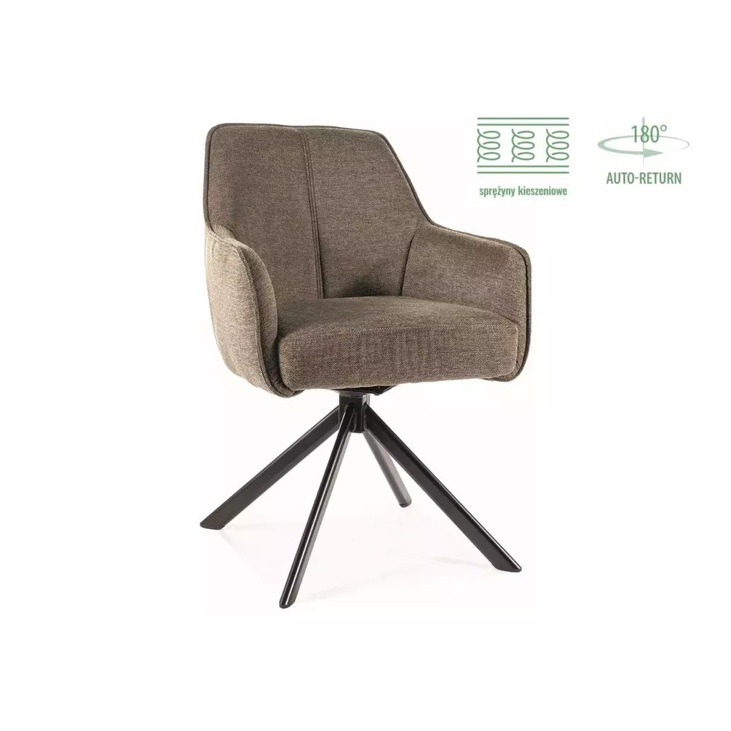Stolička stojí na pevnej kovovej konštrukcii, ktorá zaručuje nielen pevnosť a stabilitu, ale aj ponúka možnosť otáčania stoličky o 180°, s automatickým návratom. Látka BREGO je kvalitná látka príjemná na dotyk, odolná voči oderu, žmolkovaniu.
