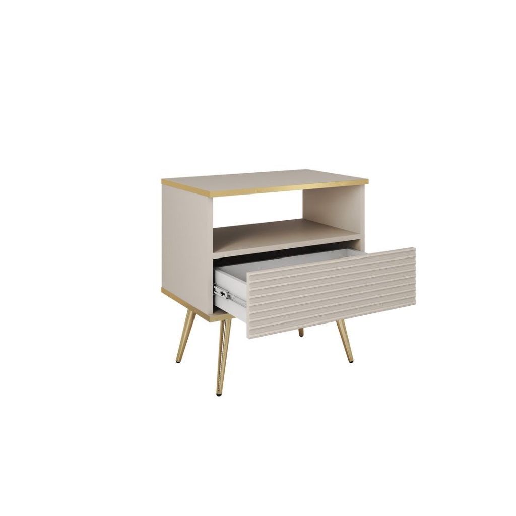 Nočný stolík BIJOU S-547 MDF | béžová / zlaté nohy