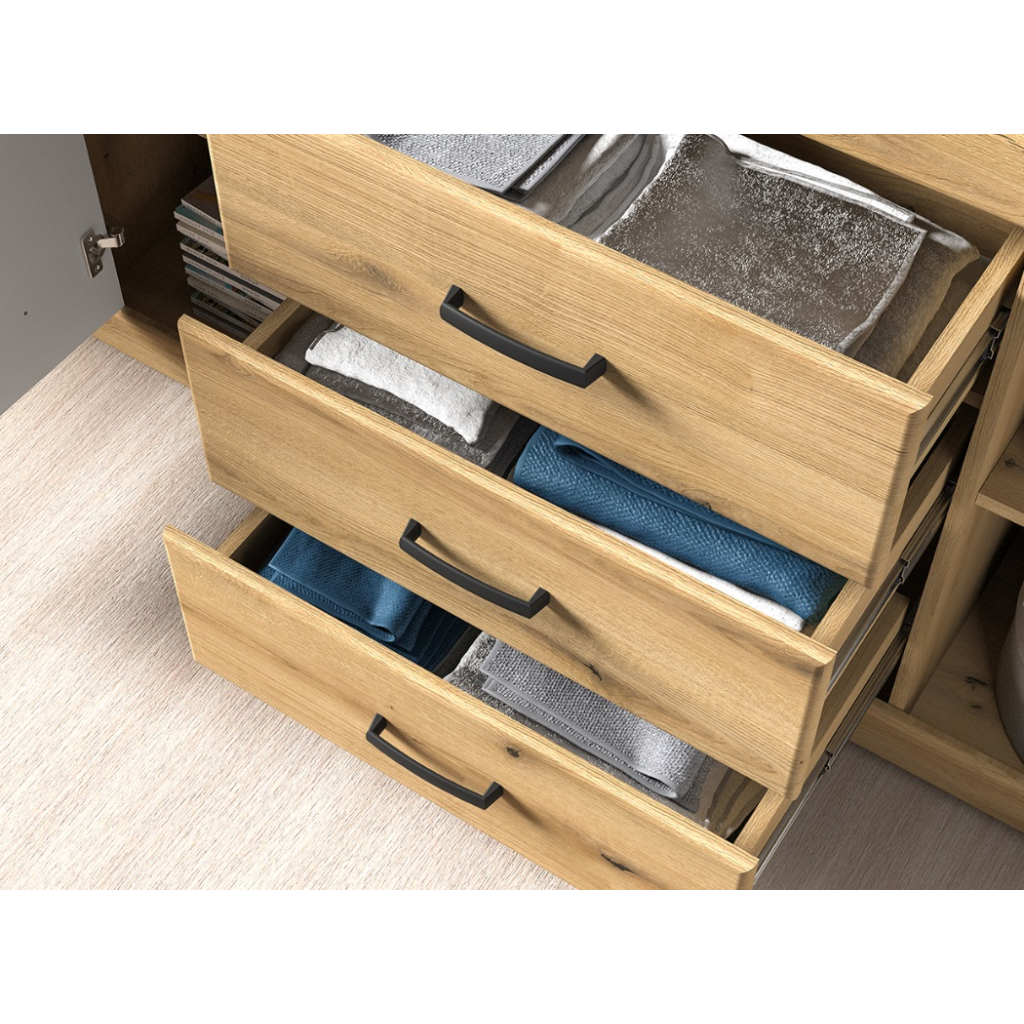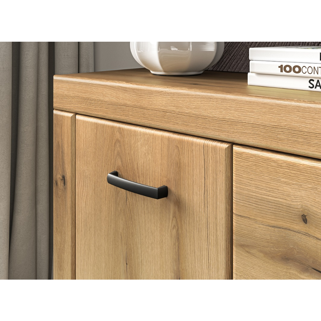 Obývacia stena DARIA je stvorená pre tých, ktorí hľadajú štýlovú obývačku s nádychom elegancie a pohody. Jemne zaoblené línie, prírodný dekor Evoke Oak a decentné detaily v čiernej farbe vytvárajú harmonický celok, ktorý pôsobí moderne a zároveň útulne. Kombinácia kvalitného spracovania a premyslených detailov prináša nielen krásu, ale aj komfort do každodenného života. Obývacia stena ponúka dostatok úložného miesta, taktiež je možné k vitríne doobjednať LED osvetlenie.