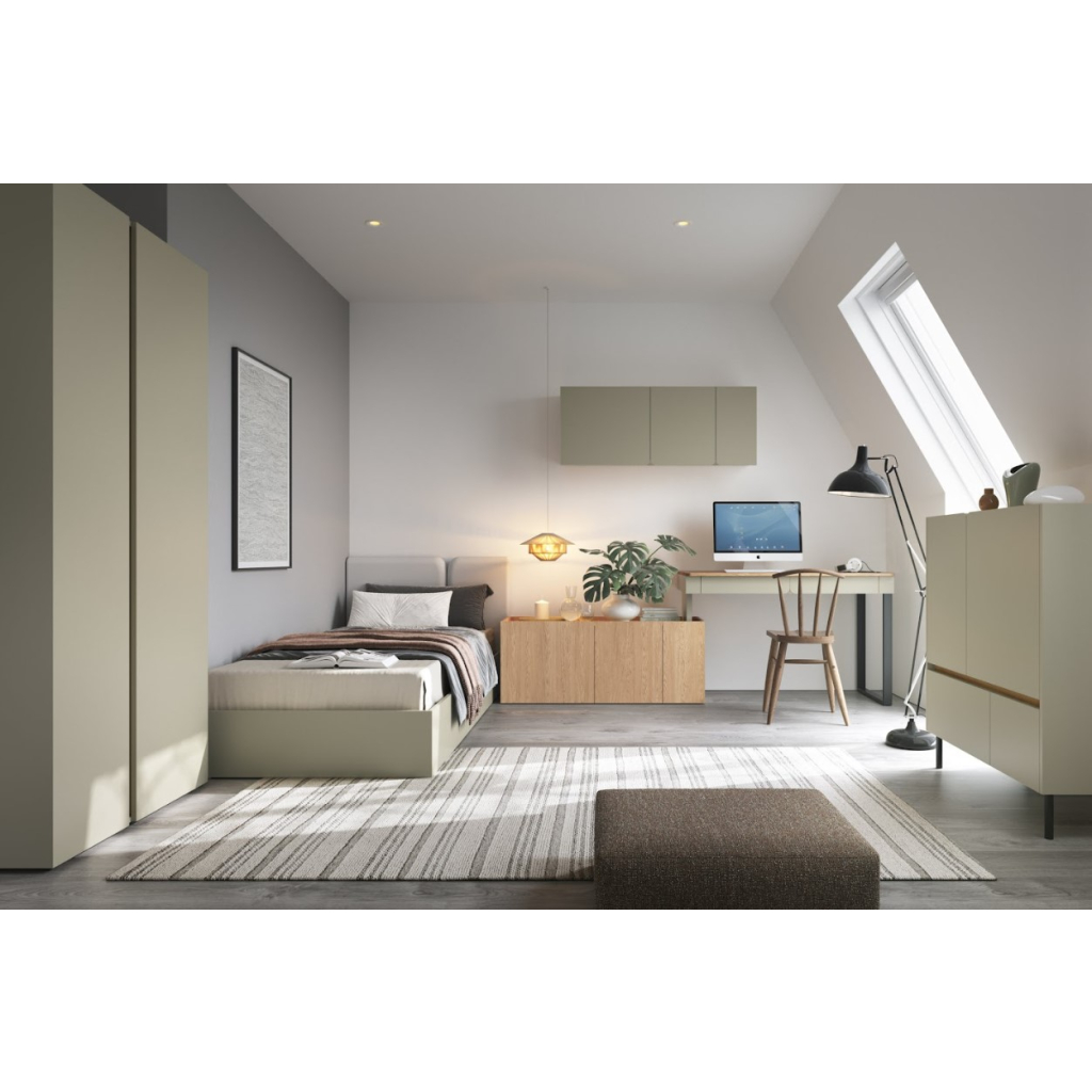 Pohodlná posteľ LUCA LC14 v príjemnom farebnom prevedení eukalyptus s kombináciou dub baltic. Posteľ s vysokým čalúneným čelom je skvelou voľbou do detskej či študentskej izby. Kombinácia odtieňov prevedenia prináša do detskej izby príjemnú a harmonickú atmosféru. Priestranný úložný priestor je navrhnutý na uschovanie lôžkovín alebo sezónných vecí. Posteľ má v cene rošt, matrac je možné doobjednať z našej ponuky doobjednať.