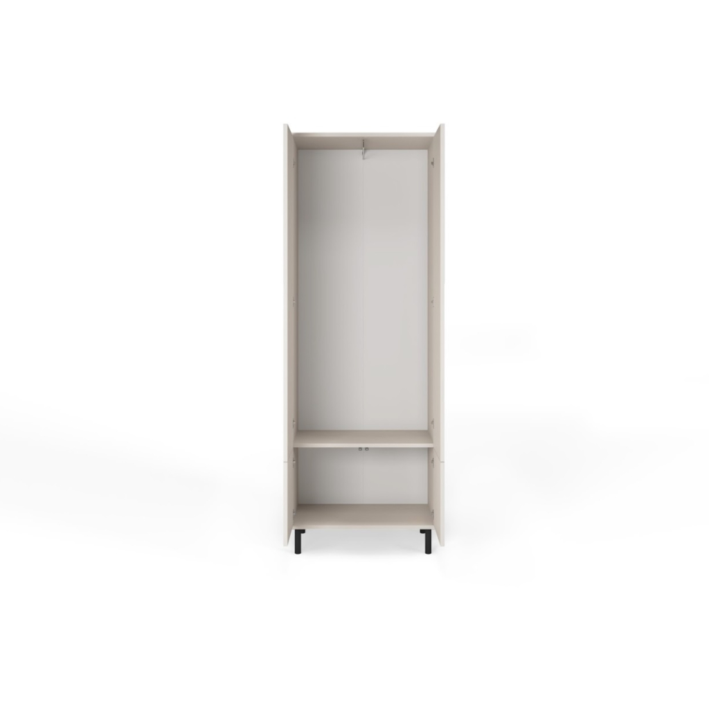 Šatníková skriňa KREO 70 prináša dokonalú harmóniu elegancie a moderného dizajnu, pričom jemné kašmírové odtiene dodávajú interiéru príjemné teplo a nádych decentného luxusu. Šatníková skriňa je vybavená praktickým systémom otvárania „push to open“, ktorý zaručuje pohodlie a moderný štýl. Skriňu si môžete vybrať s vysokými kovovými nohami , alebo s nízkymi plastovými nohami.