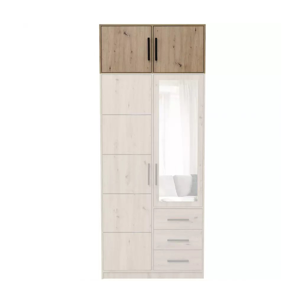 Mimoriadny nadstavec na skriňu KOS D2 je charakteristický jednoduchými čiernymi úchytkami a atraktívnymi čiernymi líniami na predných dvierkach. Nadstavec je tiež vyrobený z kvalitného a odolného materiálu, ktorý zaručuje dlhú trvanlivosť a Vašu spokojnosť. Nadstavec ponúka aj mimoriadne prevedenie úložného miesta, nadčasové farebné prevedenie a výnimočné línie. Tak už viac neváhajte a doprajte svojej spálni nádych praktickosti v podobe nadstavca KOS D2. Nadstavec je vhodný ku šatníkovej skrini KOS D2.
