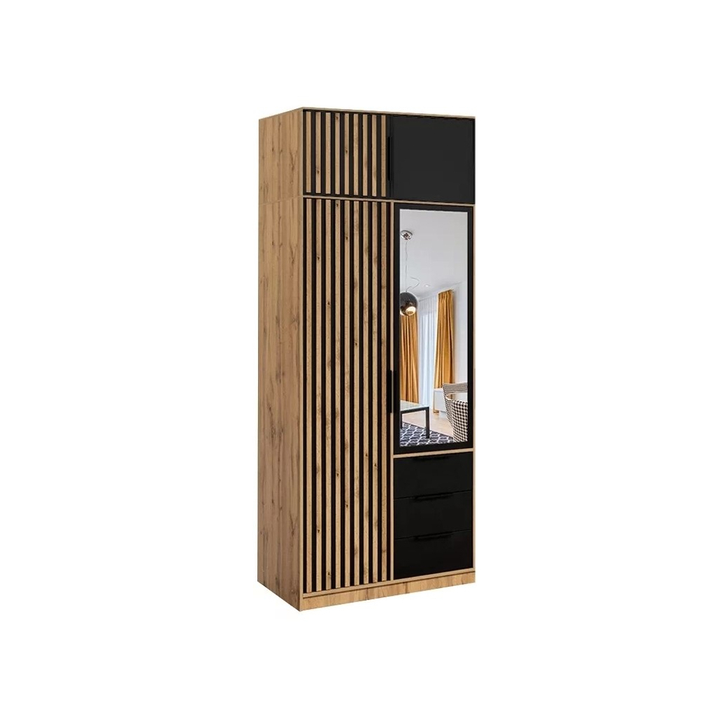 Originálny nadstavec na šatníkovú skriňu BALI LUX D2 v krásnom farebnom prevedení biela s lamelami v dekore dub wotan. Nadstavec ponúka dostatok úložného miesta napríklad aj na sezónne oblečenie. Úchytky sú v čierne farbe.