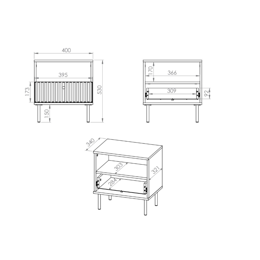 Nočný stolík je vyrobený z kvalitnej MDF dosky a z laminovanej dosky, ktorá je odolná voči poškodeniu, vlhkosti a vysokej teplote. ABS hrana sa neodlepuje a nedeformuje.