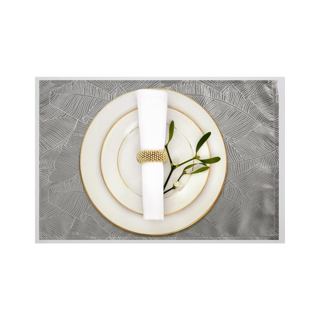 Obrúsok so žakárovým vzorom šírka: 30 cm, dĺžka: 40 cm, farba: strieborná, hmotnosť: 190 GSM, zloženie: Materiál: 100% polyester. Balenie obsahuje 4 ks.