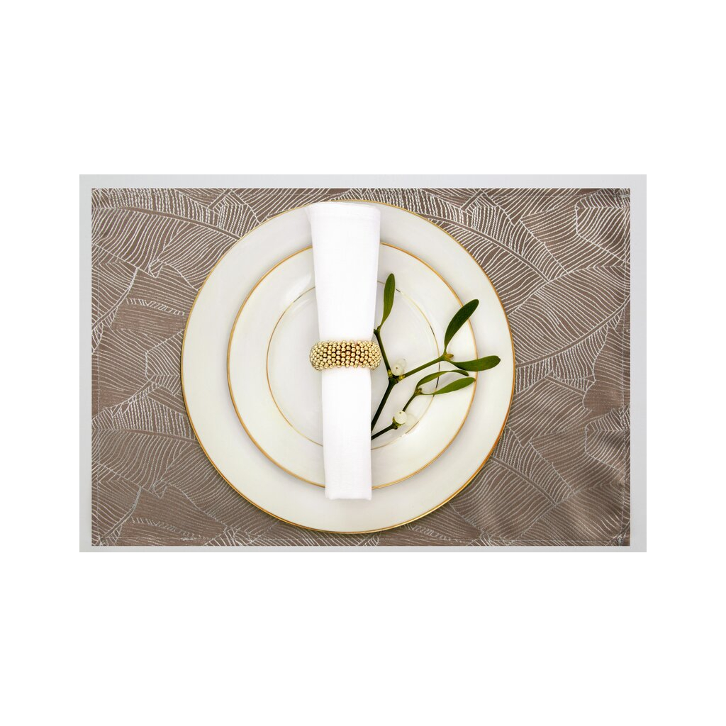 Obrúsok so žakárovým vzorom šírka: 30 cm, dĺžka: 40 cm, farba: tmavobéžová, hmotnosť: 190 GSM, zloženie: Materiál: 100% polyester.
