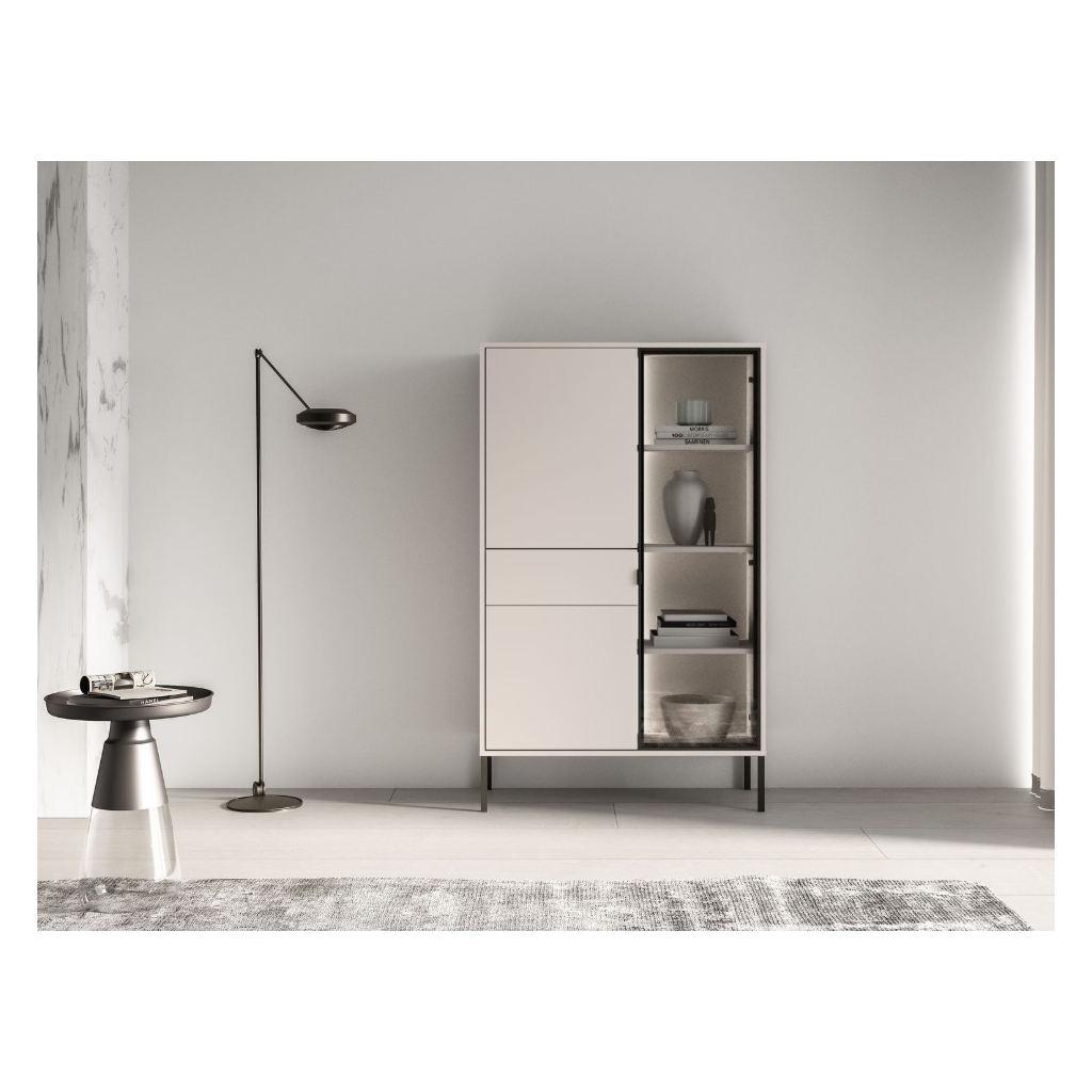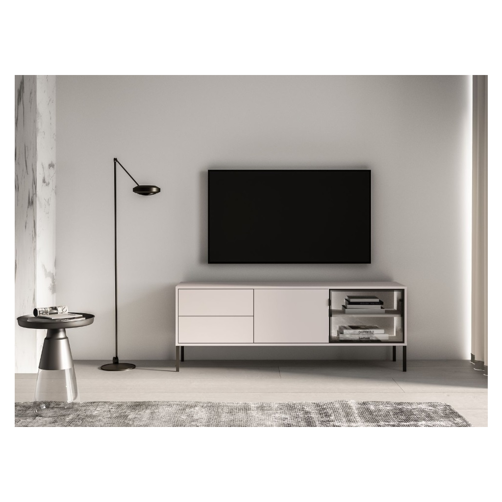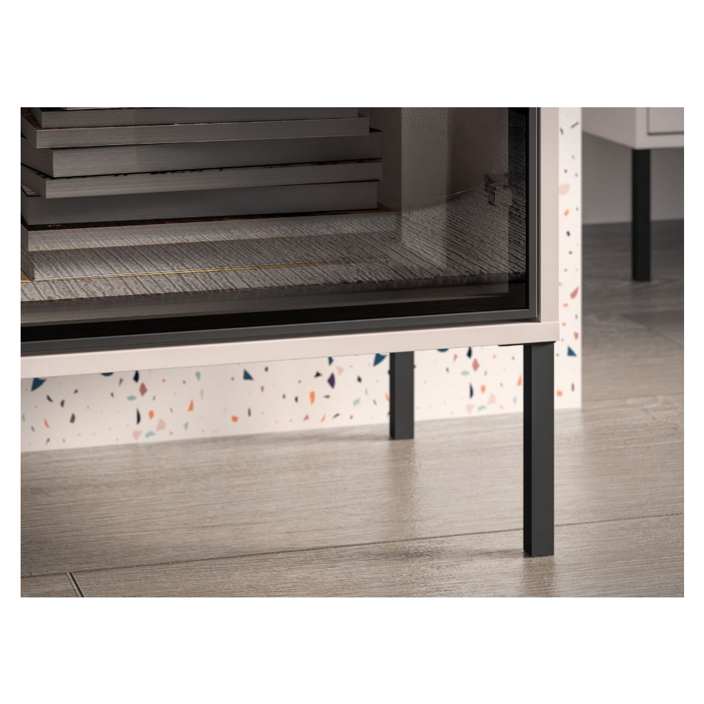 Obývacia stena ABEREN vo farebnom prevedení cashmere prináša moderný nábytok s čistými líniami, elegantnými detailmi a praktickými riešeniami. Kombinácia hliníkového rámu v čiernej farbe s tvrdeným sklom, kovových prvkov a jemného LED podsvietenia vytvára sofistikovaný vzhľad, ktorý dodá obývačke či spálni jedinečnú atmosféru. Ideálna voľba pre tých, ktorí hľadajú štýl, funkčnosť a nadčasový dizajn v jednom. Obývacia stena je priestranná s vysokými nohami, ktoré sú vhodné pre robotický vysávač.
