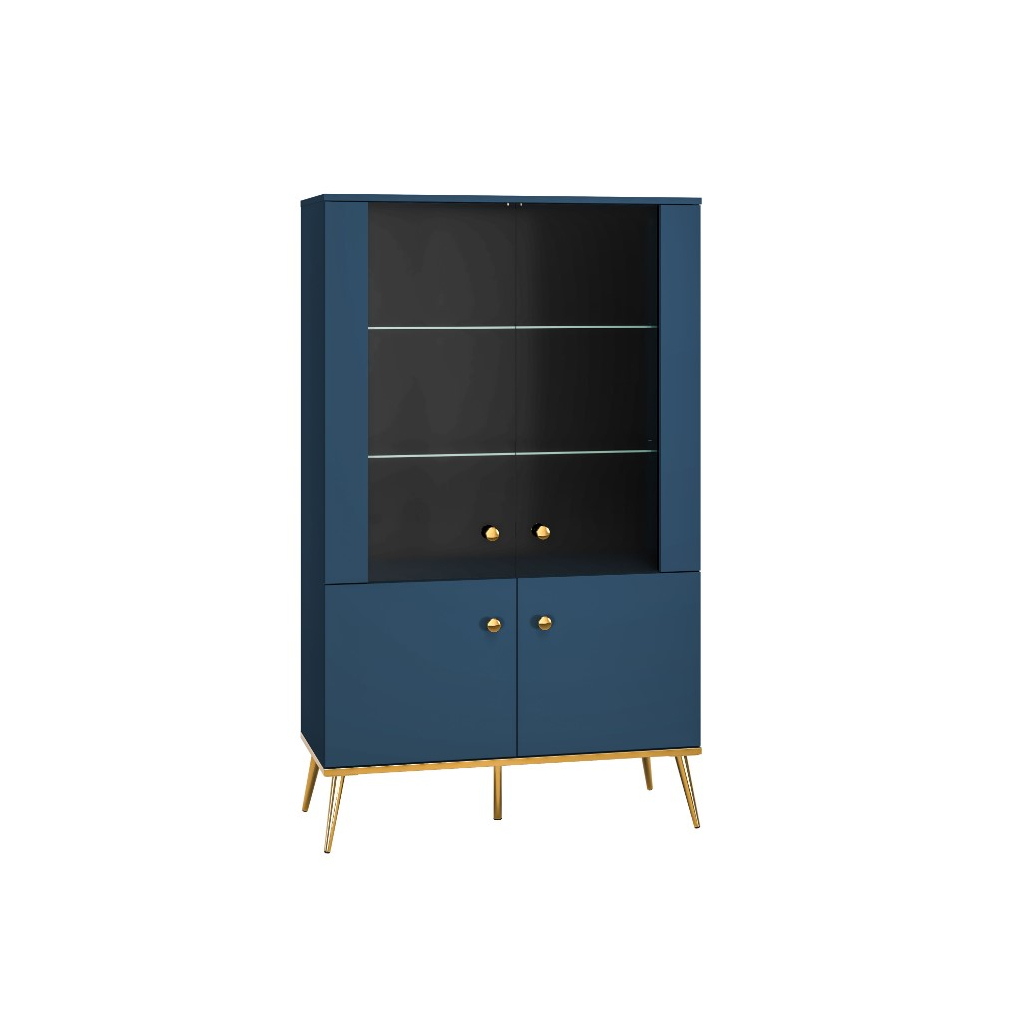 Zostava NEMARI v modrej farbe pridá do exteriéru osviežujúci a moderný vzhľad a zlaté nohy poskytujú štýlový a luxusný akcent. Moderná obývacia stena NEMARI na vysokých nohách v jednoduchých tvaroch spraví z interiéru štýlový priestor. Znamenitý a pôsobivý štýl zostavy zapadne do každého moderného interiéru. Doprajte si útulný priestor v štýle, ktorý vám je najbližší.