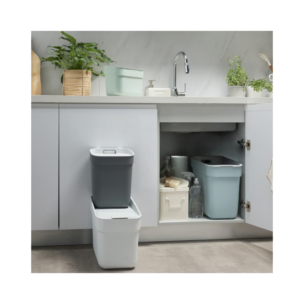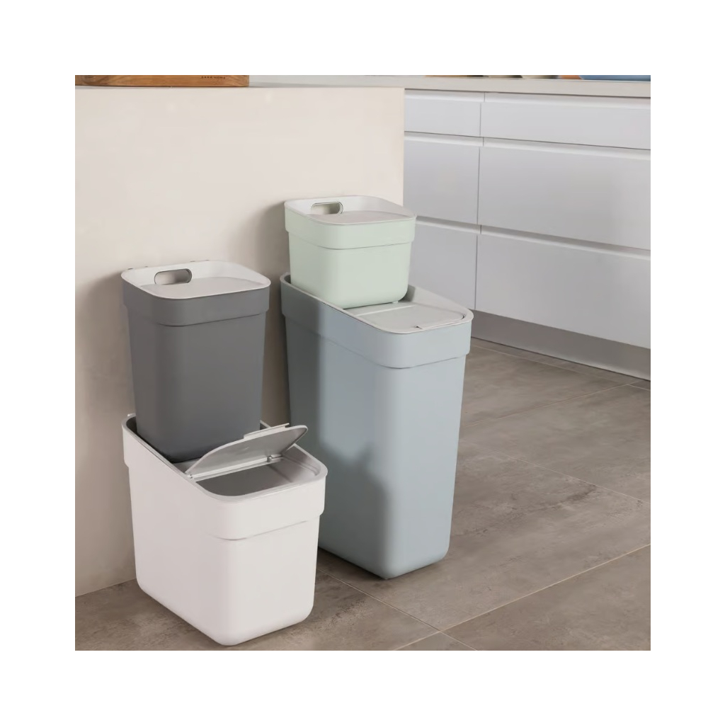 READY TO COLLECT je ideálne riešenie triedenia odpadu pre Váš domov! Modulárny a vysoko funkčný rad READY TO COLLECT prichádza vo sviežej a modernej palete farieb, ktorá sa hodí do každej kuchyne, technickej miestnosti alebo garáže. K dispozícii je v rôznych veľkostiach: od 5 l bio kompostéra kuchynského odpadu po 10 l, 20 l alebo dokonca 30 l odpadkové koše, zbieranie prázdnych obalov, fliaš alebo plechoviek nebolo nikdy tak jednoduché. Chcete ušetriť miesto? Všetky veľkosti je možné stohovať na seba s ľahkým prístupom spredu pre 20L a 30L nádoby. Vďaka voliteľnému nástennému držiaku ich možno dokonca zavesiť na stenu alebo skrinku. Zdvíhanie, prenášanie a vyprázdňovanie koša uľahčuje veľká zadná a pohodlná spodná rukoväť.