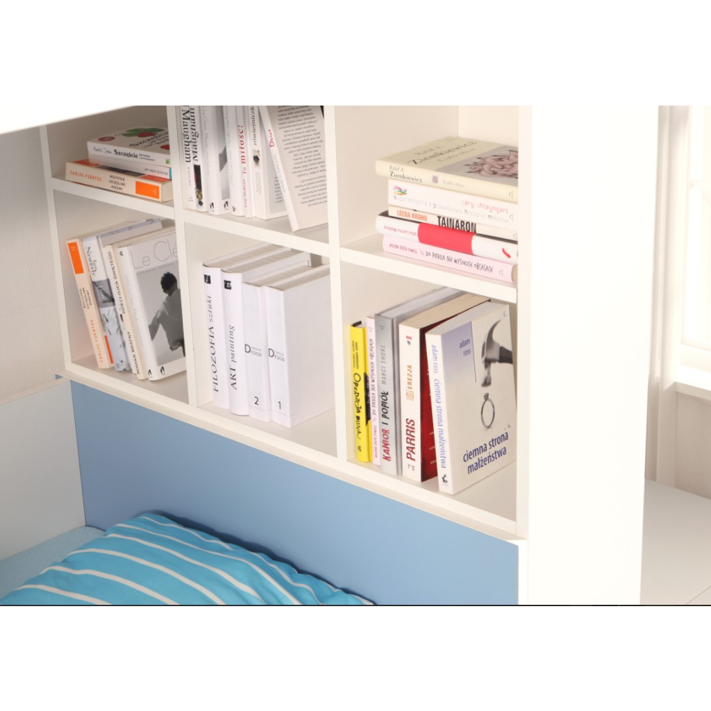 Detská poschodová posteľ GASPAR očarí deti i dospelých. Zaujímavo využitý priestor vás presvedčí, že posteľ GASPAR je pre vás tá pravá. Oceníte kombináciu farebného prevedenie biela s kombináciou modrej.