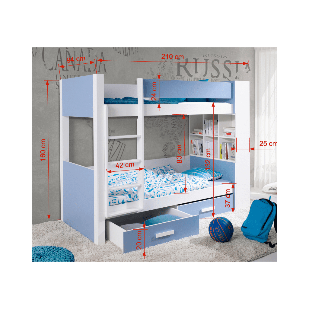 Detská poschodová posteľ GASPAR | akryl | biela/modrá
