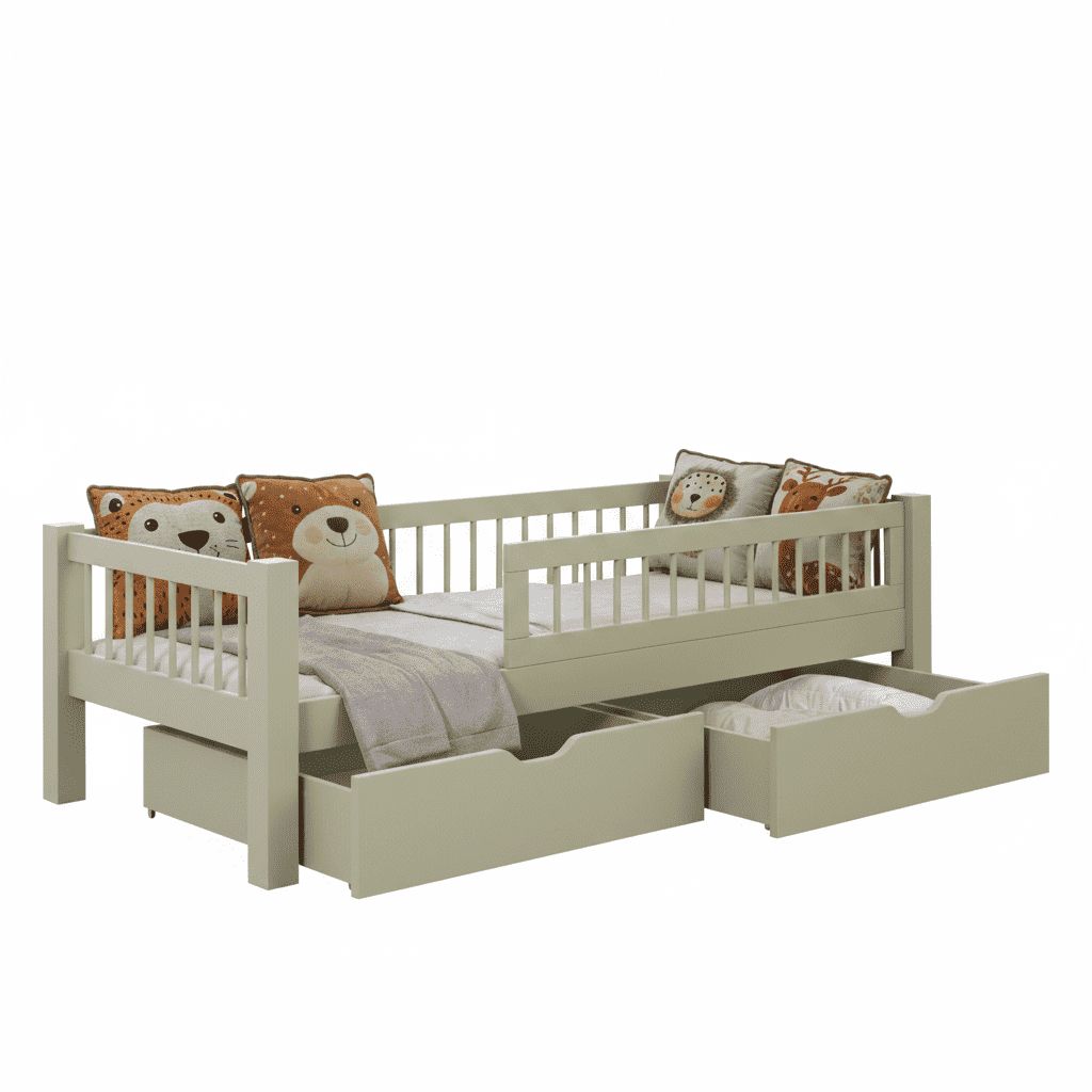 Hľadáte posteľ, ktorá spojí pohodlné spanie s praktickým úložným priestorom? Detská posteľ  ADEL so zásuvkami je ideálnou voľbou pre rodičov, ktorí chcú mať v detskej izbe poriadok a zároveň dopriať dieťaťu bezpečné a komfortné miesto na oddych. Vďaka svojmu jednoduchému a nadčasovému dizajnu sa posteľ hodí do každej detskej izby – či už ju zariadite moderne, škandinávsky alebo hravo. Biele a borovicové prevedenie opticky zväčšuje priestor a pôsobí čistým, sviežim dojmom. Naopak zelená posteľ pôsobí dizajnovo. Veľkou výhodou tejto postele sú priestranné výsuvné zásuvky, ktoré poskytujú dostatok miesta na uloženie posteľnej bielizne, hračiek alebo sezónneho oblečenia. Všetko tak budete mať prehľadne uložené a vždy poruke. Posteľ má v cene rošt, matrac je možné doobjednať.