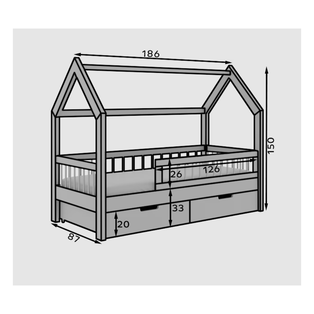 Detská posteľ GALICJA je originálny kúsok nábytku, ktorý spája praktickosť s dizajnom inšpirovaným útulnou škandinávskou estetikou. Tvar domčeka podporuje detskú fantáziu a mení posteľ na čarovné miesto pre hranie aj odpočinok. Posteľ je ideálnym centrom detskej izby, poskytuje pohodlný spánok a zároveň podnecuje tvorivosť. Súčasťou postele je rošt. Matrac je potrebné doobjednať. Vďaka jednoduchým líniám a prírodnej povrchovej úprave sa harmonicky začlení do každého interiéru bez ohľadu na jeho štýl.