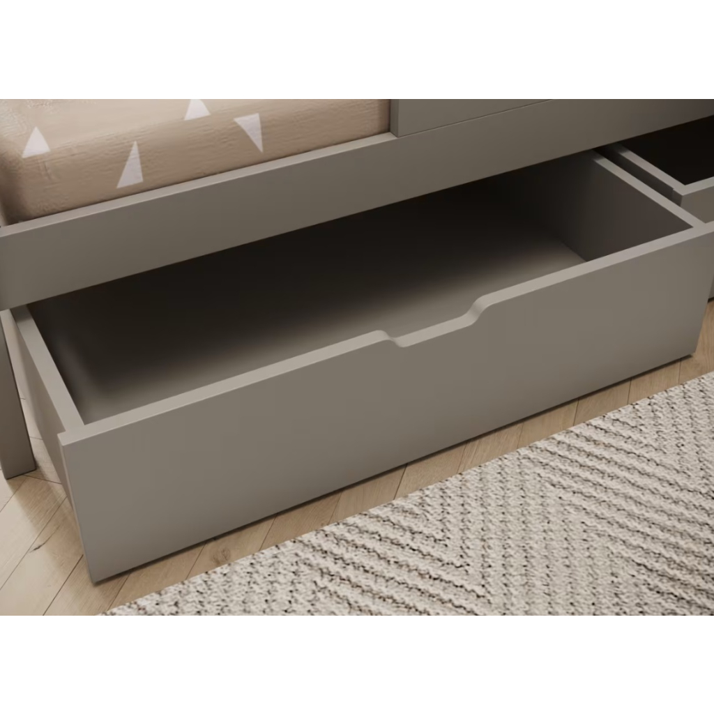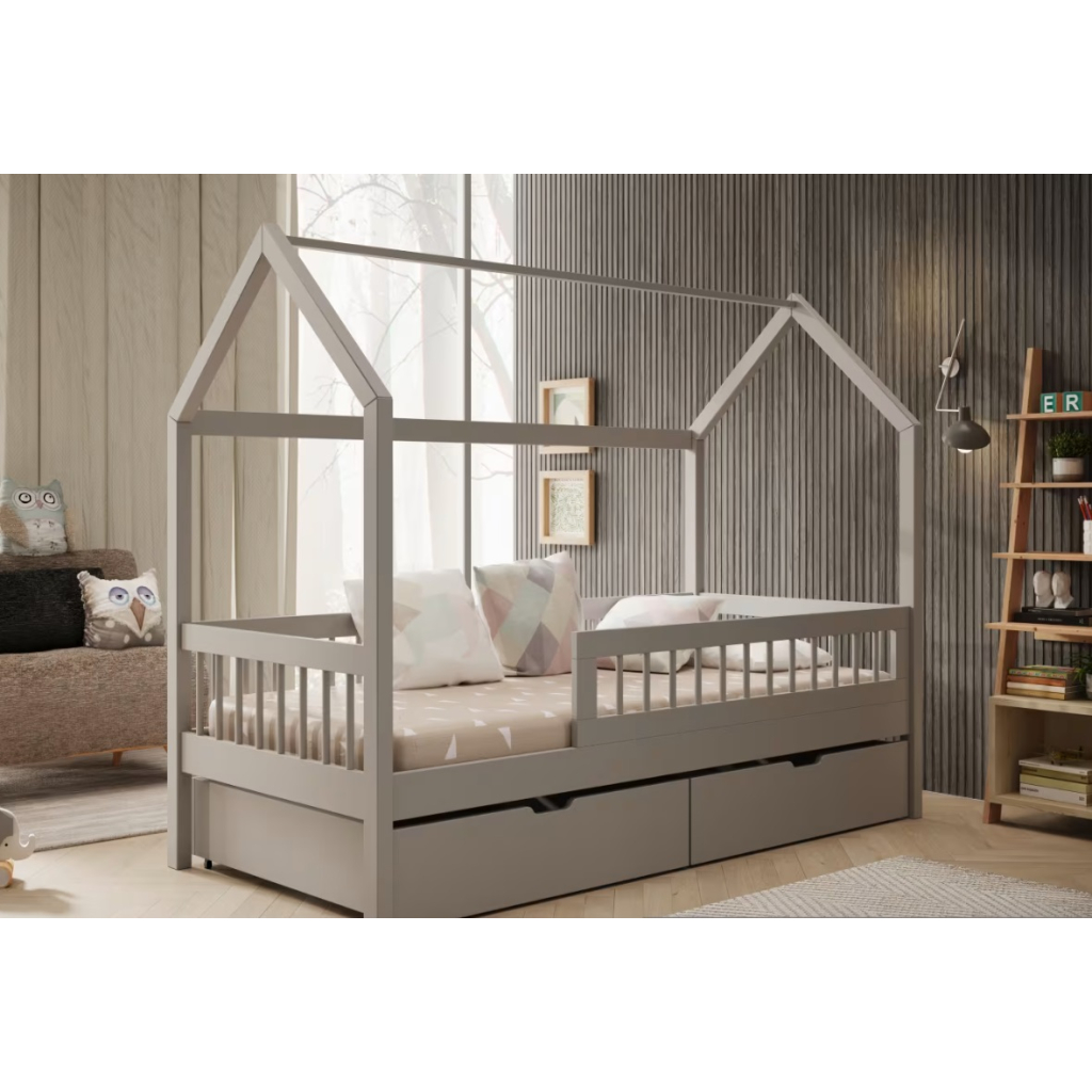 Detská posteľ GALICJA v sivej farbe je originálny kúsok nábytku, ktorý spája praktickosť s dizajnom inšpirovaným útulnou škandinávskou estetikou. Tvar domčeka podporuje detskú fantáziu a mení posteľ na čarovné miesto pre hranie aj odpočinok. Posteľ je ideálnym centrom detskej izby, poskytuje pohodlný spánok a zároveň podnecuje tvorivosť. Súčasťou postele je rošt. Matrac je potrebné doobjednať. Vďaka jednoduchým líniám a prírodnej povrchovej úprave sa harmonicky začlení do každého interiéru bez ohľadu na jeho štýl.