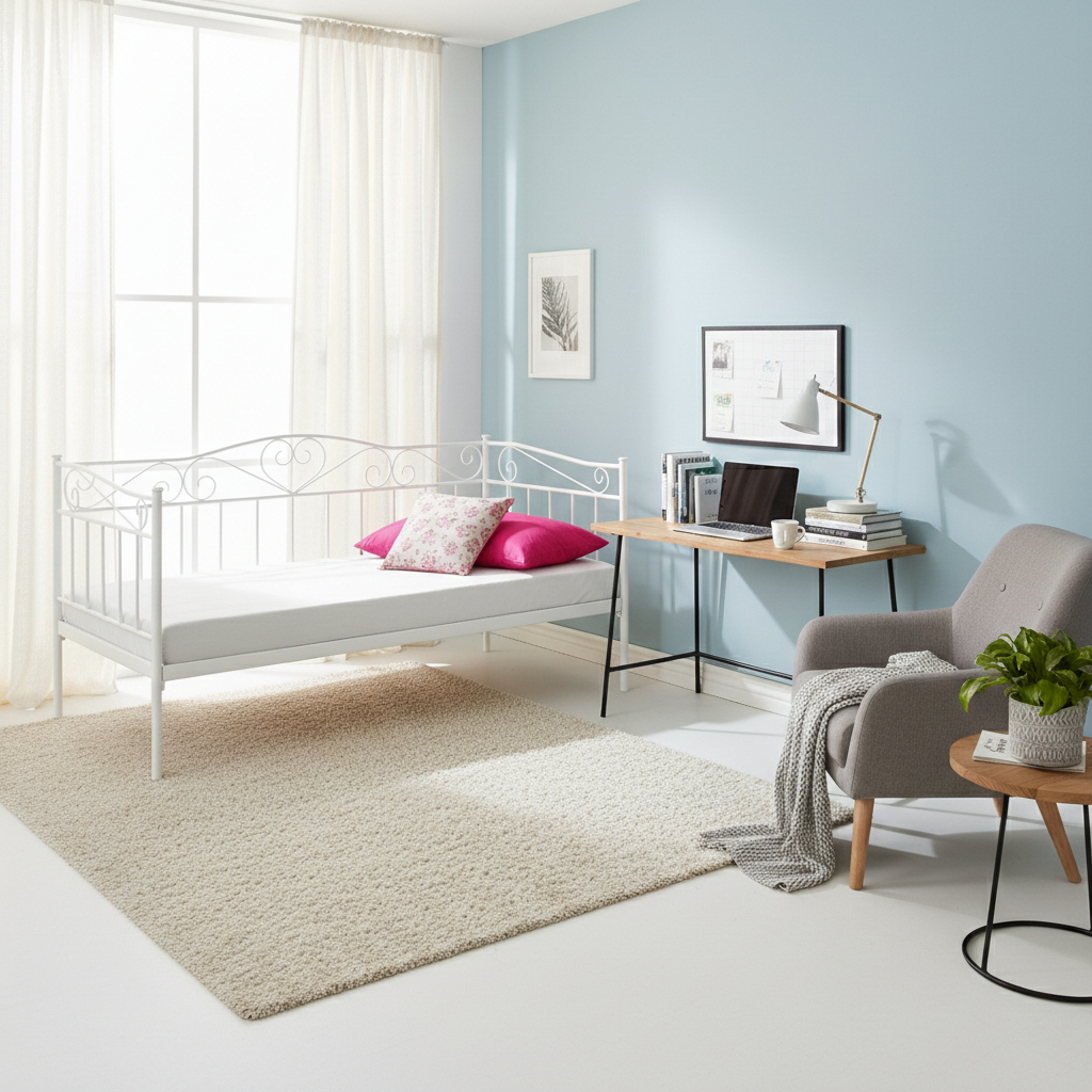 Posteľ je vyrobená z kvalitného kovu, ktorý je odolný voči poškodeniu. Kovová konštrukcia dodáva nielen celkový dizajn, ale aj stabilitu a pevnosť.