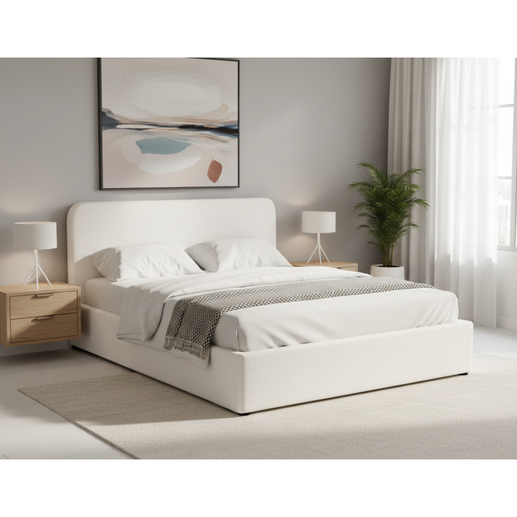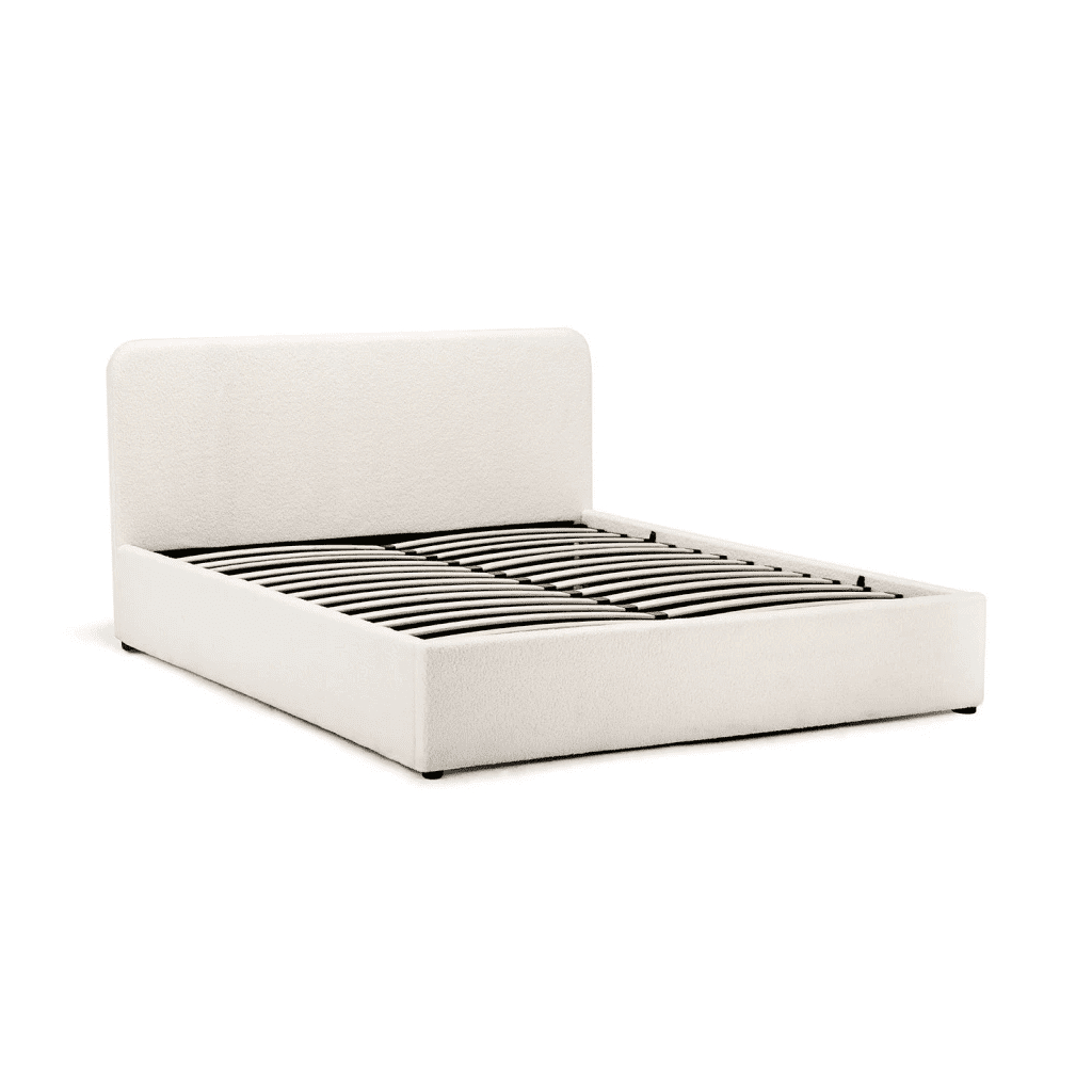 Čalúnená manželská posteľ TEDDY v luxusnom bielom prevedení z jemnej bouclé látky je stelesnením moderného dizajnu, útulnosti a praktickej funkčnosti. Trendová štruktúrovaná látka bouclé dodáva posteli jedinečný „teddy“ efekt, ktorý pôsobí mäkko, hrejivo a mimoriadne štýlovo. Posteľ sa tak stane dominantným prvkom každej modernej spálne. Súčasťou postele je kvalitný výklopný lamelový rošt, ktorý zabezpečuje jednoduchý prístup do priestranného úložného priestoru pod celou plochou lôžka. Tento priestor je ideálny na odkladanie posteľnej bielizne, vankúšov, diek či sezónnych vecí a pomôže vám udržať spálňu dokonale upratanú. Matrac nie je súčasťou postele, je možné ho doobjednať.