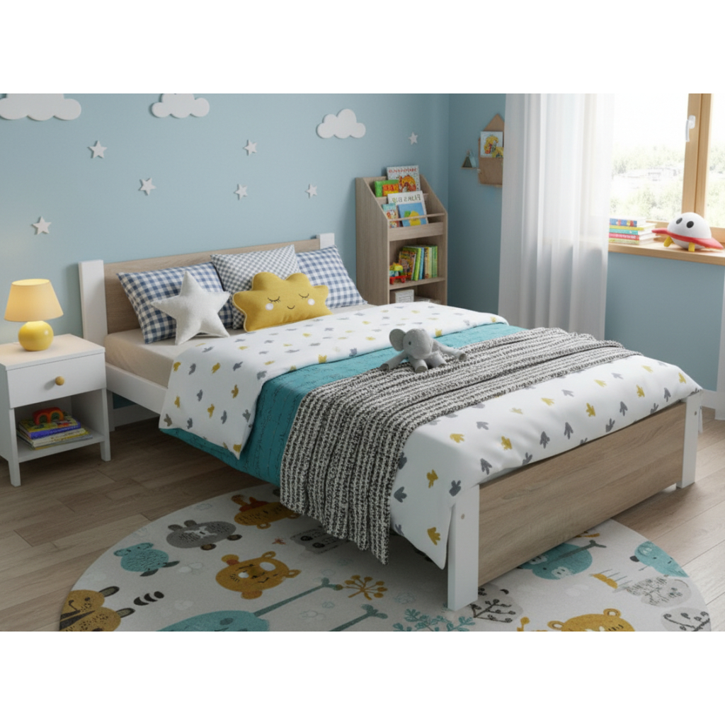 Jednolôžková posteľ DEA 90 x 200 cm je vyrobená z masívneho borovicového dreva v bielej farbe v kombinácii s kvalitnou MDF doskou v dekore dub sonoma. Posteľ má v cene rolovací rošt, matrac je nutné doobjednať. Posteľ je vhodná do detskej, študentskej alebo hosťovskej izby. Jednolôžková posteľ DEA značky Elvisia očarí svojím prevedením a kvalitným spracovaním.