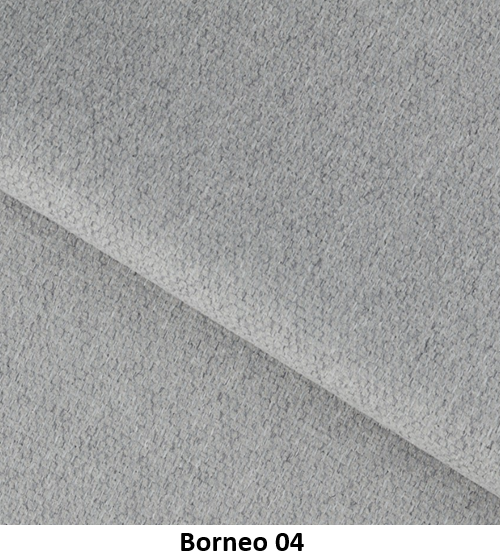 Poťahová látka Borneo je moderný materiál so špeciálnou povrchovou úpravou, ktorá zabezpečuje vodeodolnosť a jednoduché čistenie. Látka je príjemná na dotyk, má viditeľnú štruktúru a je vyrobená zo 100 % polyesteru. S hmotnosťou 305 g (±5 %) a odolnosťou 45 000 oderov v teste Martindale je vhodná na každodenné použitie v klasickom aj modernom interiéri. Poťahová látka Borneo patrí do skupiny Premium.
