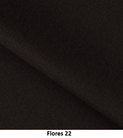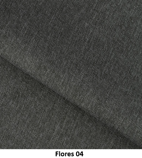 Poťahová látka Flores má jemnú štruktúru a je odolnejšia voči rozťahovaniu a ťahaniu. Vyznačuje sa jednoduchým čistením, vysokou životnosťou a odolnosťou voči slnečnému žiareniu. Látka Flores je odolná voči žmolkovaniu, má vysokú farebnú stálosť a je vhodná na čalúnenie nábytku. Vyrobená je zo 100% polyesteru s gramažou 240 m2 +-5%. Vďaka testu Martindale je odolnosť proti oderu 100 00 cyklov. Táto látka patrí do skupiny Special 05, 10, 21, 04, 22 a do skupiny Standard 19, 40.