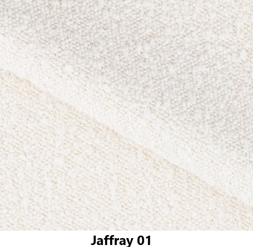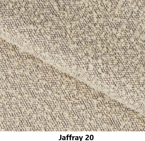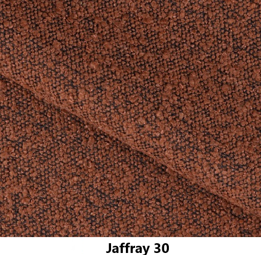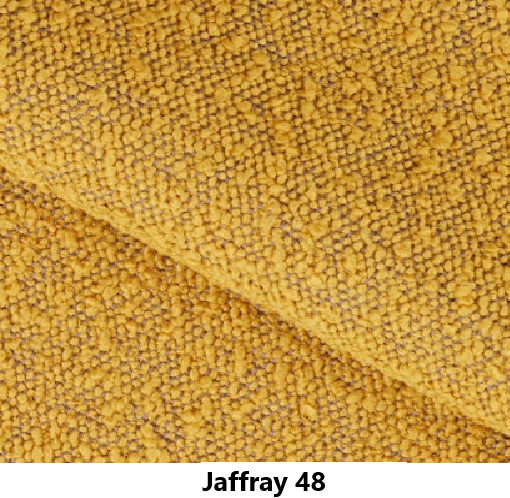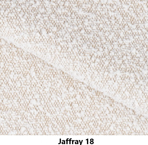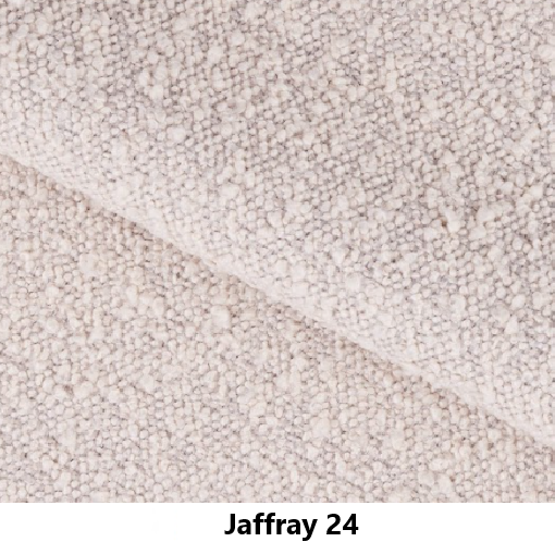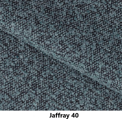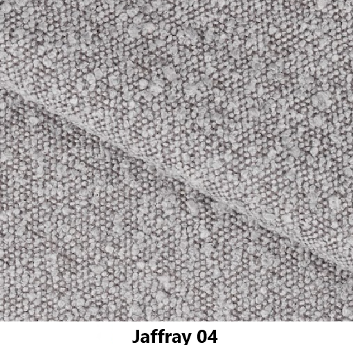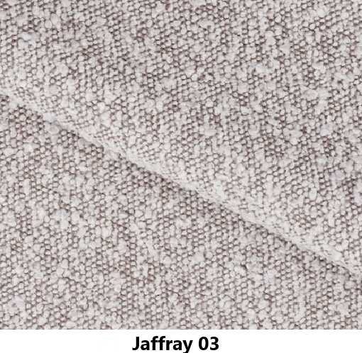 Poťahová látka JAFFRAY je látka vyrobená zo 100% polyesteru, ktorá sa vyznačuje vysokou odolnosťou proti oderu a žmolkovaniu. Je príjemná na dotyk a vyniká vysokou odolnosťou voči svetlu, čo zaručuje dlhodobú farebnú stálosť. Vďaka týmto vlastnostiam je ideálnou voľbou pre čalúnenie nábytku, ako sú pohovky či postele. JAFFRAY je kvalitná poťahová látka s gramážou 855 g/m2 s toleranciou +/- 5% v jemných farebných prevedeniach, ktorá oživí každý interiér. Látka je ohňu vzdorná, jej charakteristickým znakom je výraznejšia textúra, ktorá je príjemná na dotyk. Test Martindale je >80 000 oderov. Látka patrí do skupiny Premium.