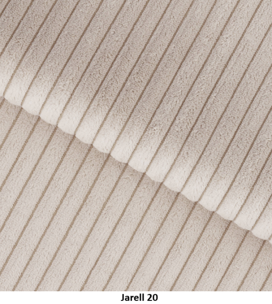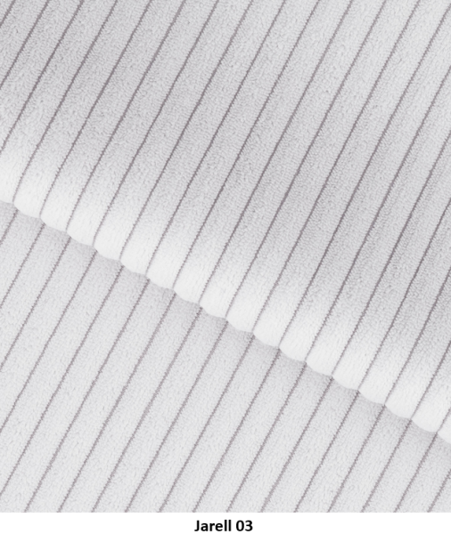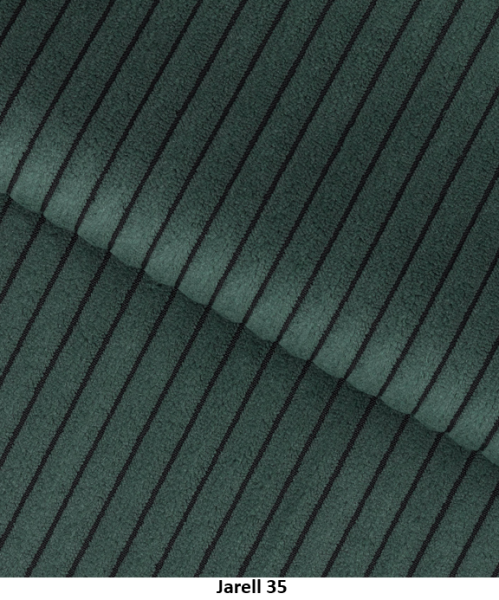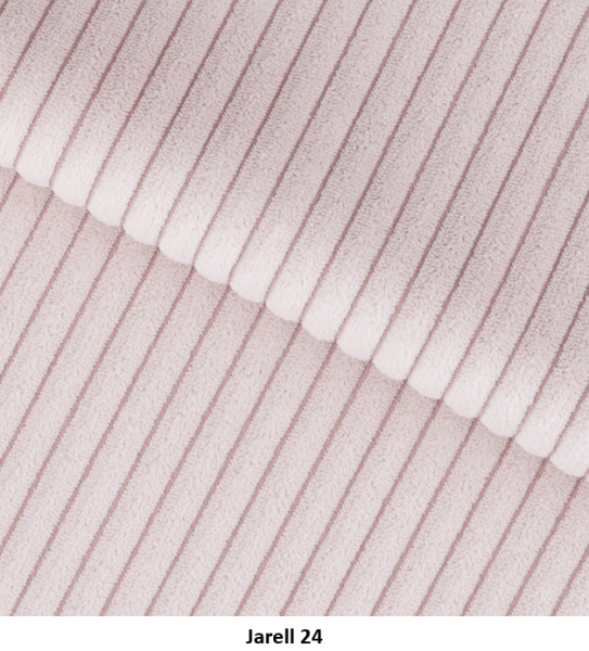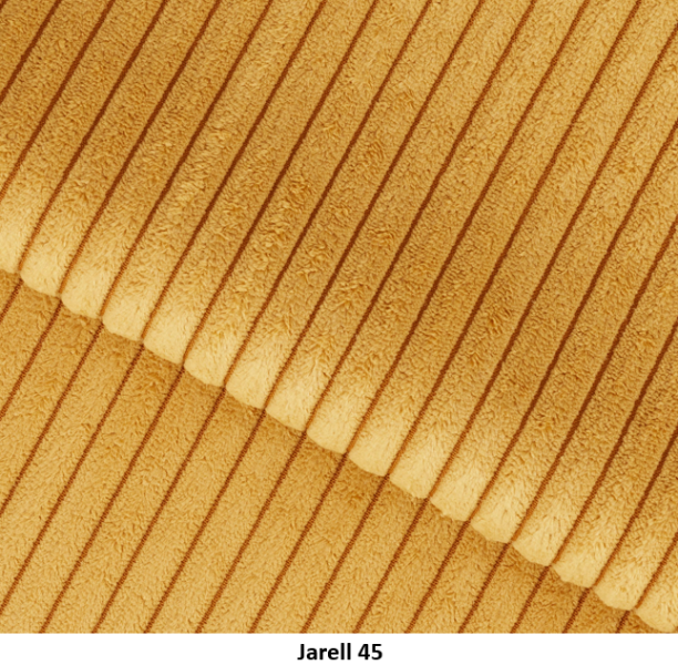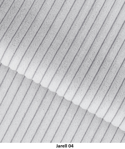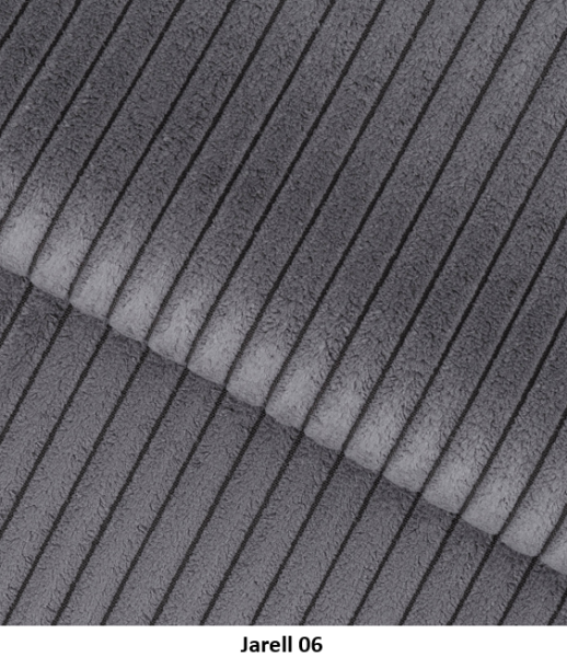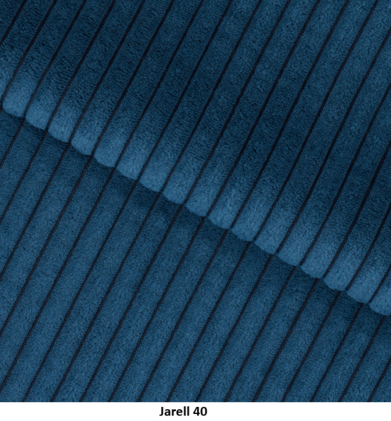 Poťahová látka JARELL je jedinečný manšestr s veľmi výraznými, hrubými pruhmi vyrobená je zo 100 % polysteru. Táto látka sa vyznačuje mäkkosťou a trojrozmerným vzhľadom, vďaka čomu je vynikajúcou voľbou pre čalunený nábytok. Čalúnenie z manšestru je pevné, trvácne a oderuvzdorné, čo zaručuje vysokú kvalitu na dlhé roky. Jeho príjemná a na dotyk jemná štruktúra dodáva interiéru príjemnú, útulnú atmosféru. Látka Jarell s gramažou 320 g/m², odchylkou +/- 5 %. Poťahová látka Jarell patri do skupiny Classic. Je navrhnutá s dôrazom na vysokú odolnosť, čo potvrdzuje výsledok testu Martindale s hodnotou 100 000 cyklov, čo zaručuje jej dlhú životnosť aj pri intenzívnom používaní.