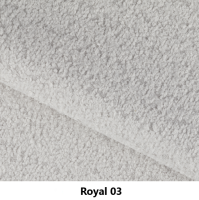 Látka ROYAL je luxusná elegantná látka, ktorá sa vyznačuje mäkkosťou a kvalitným prevedením. Patrí medzi prémiovejšie materiály, často sa používa na sedacie súpravy, kreslá či postele. Royal je kvalitná poťahová látka s gramážou 580 g/m2 s toleranciou +/- 5% v jemných farebných prevedeniach, ktorá oživí každý interiér. Látka je ohňu vzdorná, jej charakteristickým znakom je výraznejšia textúra, ktorá je príjemná na dotyk. Test Martindale je 45 000 oderov. Látka patrí do skupiny Classic.