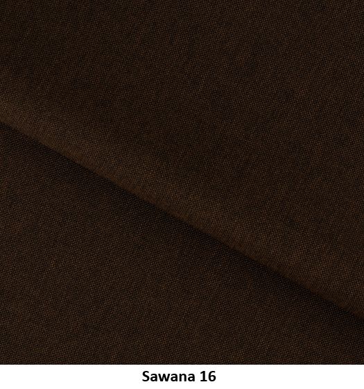 Poťahová látka Sawana vyrobená zo 100 % poleysteru. Na dotyk príjemná látka s pletenou štruktúrou. Látka je nenaročná na udržbu. Poťahová látka je vystužená sieťkou čo zaručuje jej pevnosť pri roztrhnutí. Starostlivosť a čistenie látky iba so špecialnými produktami na čalunený nábytok. Test Martindale 100 000 oderov. Látka s gramažou 240 g /m2 +- 5% patrí do skupiny standard 11, 25, 80, 84 a special 05, 14, 16, 21, 26.