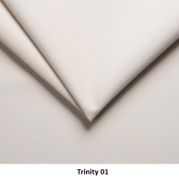 Poťahová látka Trinity je mäkká a na dotyk príjemná velúrová látka, vyznačujúca sa obmedzenou absorpciou tekutín, má tiež vysokú odolnosť proti oderu a svetlu. Látka je na povrchu pokrytá jemným páperím vyrobená zo 100 % polyesteru. Poťahový materiál so svojou intenzívnou matnou farbou je ideálny pre čalúnený nábytok vrátane vankúšov aj najmä vďaka svojej vysokej odolnosti oderu, testovanej až 100 000 cyklov Martindale. Trinity je kvalitná látka s gramažou 355g/m2 s toleranciou +/- 5% v jemných farebných prevedeniach.