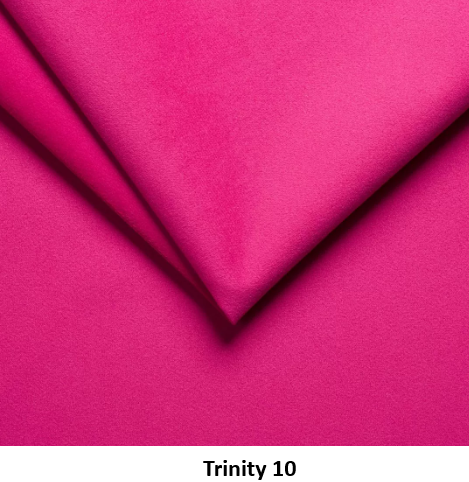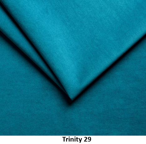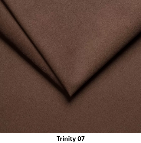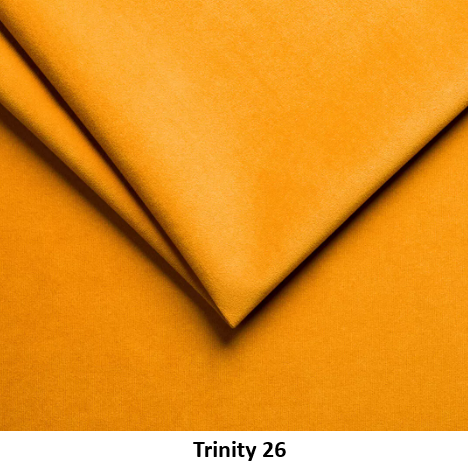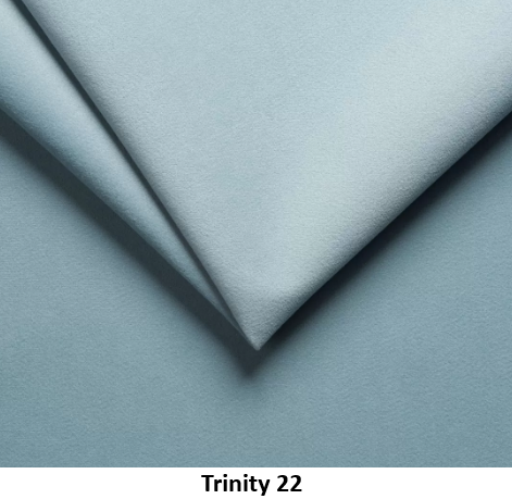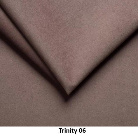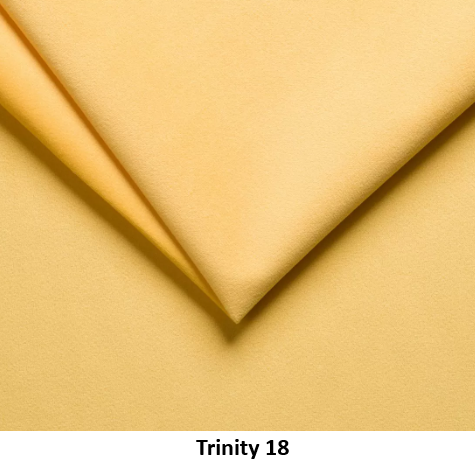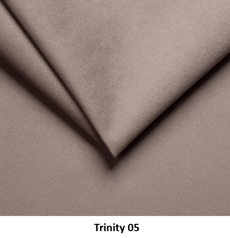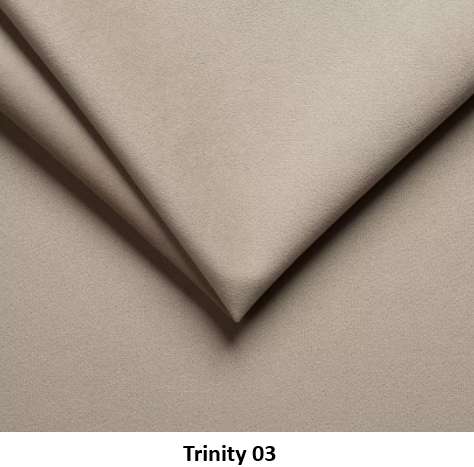 Poťahová látka Trinity je mäkká a na dotyk príjemná velúrová látka, vyznačujúca sa obmedzenou absorpciou tekutín, má tiež vysokú odolnosť proti oderu a svetlu. Látka je na povrchu pokrytá jemným páperím vyrobená zo 100 % polyesteru. Poťahový materiál so svojou intenzívnou matnou farbou je ideálny pre čalúnený nábytok vrátane vankúšov aj najmä vďaka svojej vysokej odolnosti oderu, testovanej až 100 000 cyklov Martindale. Trinity je kvalitná látka s gramažou 355g/m2 s toleranciou +/- 5% v jemných farebných prevedeniach.