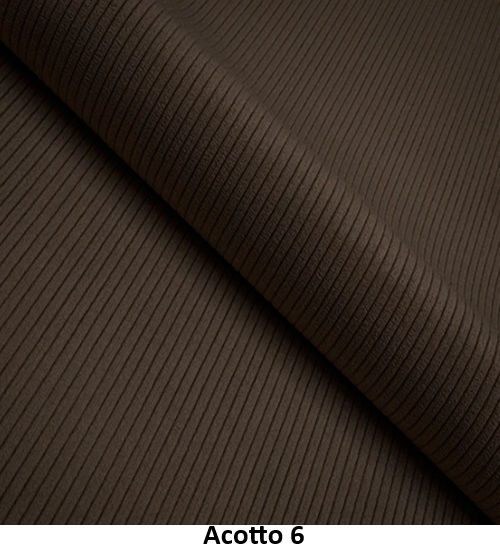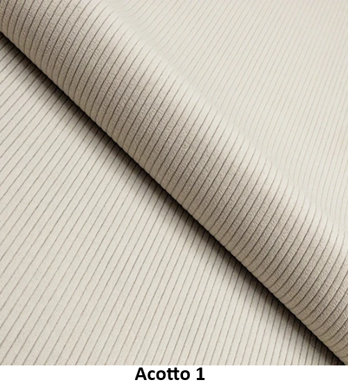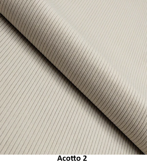 Poťahová látka Acotto / Piatto je manšestrová poťahová látka zo 100 % polyesterového mikrovlákna s jemným zamatovým povrchom. Vďaka vodeodolnej úprave je odolná voči vlhkosti a nečistotám, zároveň sa ľahko čistí. S vysokou hmotnosťou 560 gramov a odolnosťou 70 000 cyklov v teste Martindale je ideálna na každodenné používanie. Pôsobí luxusne a hodí sa do moderných aj klasických interiérov. Mimoriadne mäkká a jemná látka určite osloví všetkých, ktorí si cenia pohodlie a komfort.