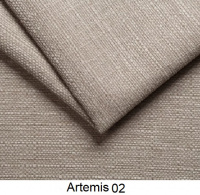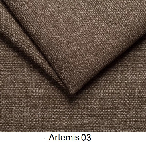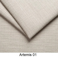 Štruktúrovaná poťahová látka Artemis je syntetická látka vyrobená zo 100% polyesteru. Je odolná a pevná, exkluzívne a kvalitné prevedenie je vhodné aj do verejného prostredia. Textúra s melanžovým efektom je na dotyk zaujímavá a rôznorodá textúra je príjemná a mäkká. Artemis je kvalitná poťahová látka s gramážou 480 g/m2 s toleranciou +/- 5% v mnohých farebných prevedeniach, ktorá zapadne do každého interiéru. Látka je jedna z najodolnejších látok na trhu, Test Martindale 45 000 oderov. Látka patrí do I. cenovej skupiny.