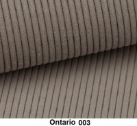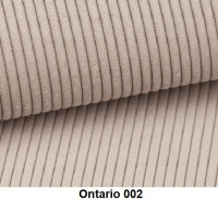 Veľmi príjemná látka na dotyk Ontario je svetlostála a zároveň nemá sklon ku žmolkovaniu. Látku odporúčame očisťovať iba špeciálnymi prostriedkami nato určenými, nebieliť a chemicky nečistiť. Ontario je kvalitná poťahová látka s gramážou 330 g/m2 s toleranciou +/- 5% v mnohých farebných prevedeniach, ktorá oživí každý interiér. Látka je odolná voči oderu, Test Martindale 35 000 oderov. Látka s jemným vrúbkami vynikne v každom interiéri, je ohňovzdorná. Látka patrí do I. cenovej skupiny.
