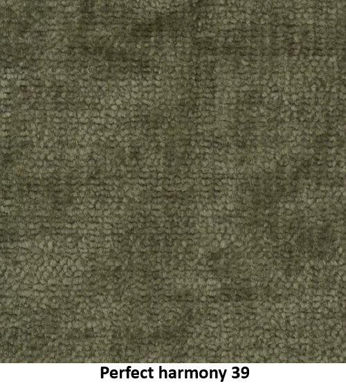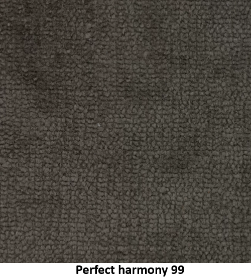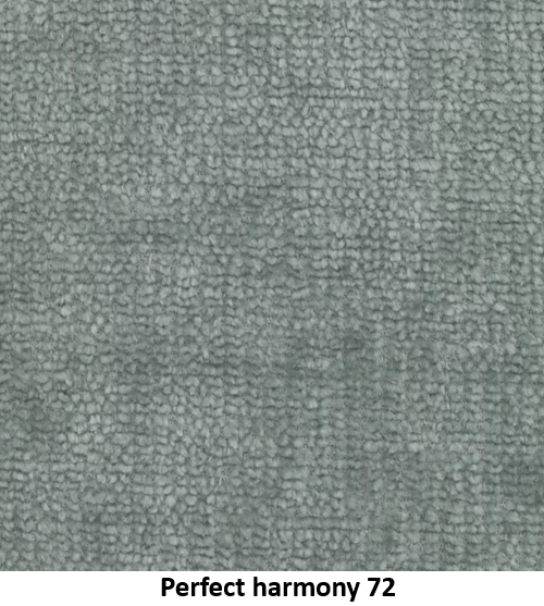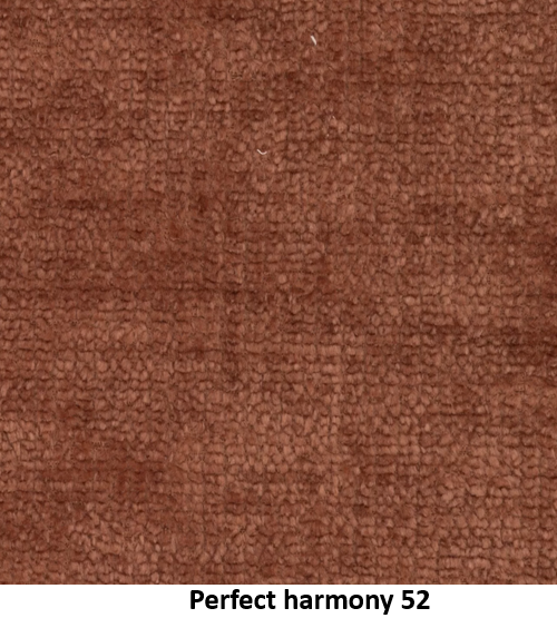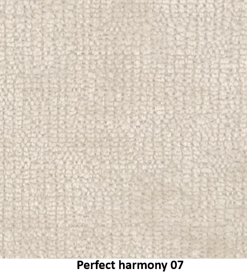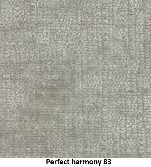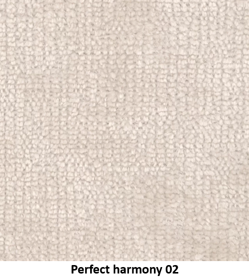 Poťahová látka Perfect Harmony je moderná čalúnnická látka s gramážou 410 g/m², ktorá zaujme mäkkým povrchom s jemným plyšovým efektom a príjemným dotykom. Vysoká odolnosť je potvrdená testom Martindale s hodnotou 45 000 – 50 000 cyklov, vďaka čomu je vhodná aj na náročné každodenné používanie. Materiál tvorí 100 % polyester, ktorý je pevný, stálofarebný a ľahko udržiavateľný. Látka je ohňovzdorná, spĺňa prísne bezpečnostné normy a zároveň je certifikovaná podľa OEKO-TEX Standard 100, čo zaručuje jej zdravotnú nezávadnosť a absenciu škodlivých látok.