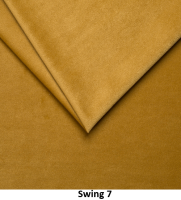 Poťahová látka Swing predstavuje dokonalé spojenie štýlu a funkčnosti. Je vyrobená zo 100 % polyesteru, vďaka čomu je nielen príjemná na dotyk, ale aj mimoriadne odolná a jednoducho udržiavateľná. Látka má plošnú hmotnosť 290 g/m² (±5 %) a vysokú odolnosť proti oderu – viac než 45 000 cyklov, čo z nej robí ideálnu voľbu pre čalúnenie sedačiek, kresiel, stoličiek či postelí. Jemná velúrová štruktúra pôsobí luxusne a elegantne, zatiaľ čo široká paleta farieb umožňuje prispôsobiť interiér modernému aj klasickému štýlu. Swing si zachováva svoj tvar a farbu aj pri intenzívnom používaní, takže je vhodná do domácností, hotelov či kancelárií.