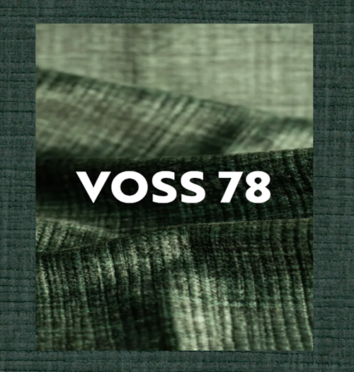 Poťahová látka VOSS je moderný zamatový úplet s gramážou 370 g/m² ± 5 %, vyrobený zo 100 % polyesteru so štandardom OEKO-TEX Standard 100, ktorý zaručuje bezpečnosť pre zdravie aj domácnosť. Materiál prešiel precíznym procesom razenia a potlače, čím vzniká elegantný efekt jemných pruhov v celej ploche. Vďaka hustému vlasu je látka mimoriadne príjemná a mäkká na dotyk, pričom mäkká podložka zaisťuje vyšší objem, komfort a dlhú životnosť. Výbornú odolnosť pri každodennom používaní potvrdzuje test Martindale – 50 000 cyklov.Ideálna voľba na čalúnenie sedacích súprav, kresiel, taburetiek a dekoratívnych doplnkov.