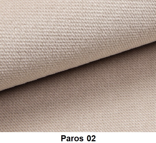 Štruktúrovaná poťahová látka Paros je syntetická látka vyrobená zo 100% polyesteru. Je odolná a pevná, je veľmi príjemná na dotyk, oceníte elegantný vzhľad. Látka s jemnou textúrou je na dotyk príjemná v lesklom prevedení, rozžiari interiér. Paros je kvalitná poťahová látka s gramážou 255 g/m2 s toleranciou +/- 5% v mnohých farebných prevedeniach, ktorá zapadne do každého interiéru. Látka je jedna z najodolnejších látok na trhu, Test Martindale 50 000 oderov. Látka patrí do I. cenovej skupiny.