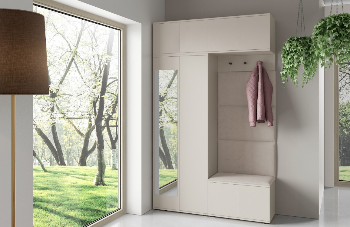 Predsieň je prvým miestom, ktoré vidíte po vstupe do domu, preto si zaslúži štýlové a praktické riešenie. Zostava do predsiene BIANCO vo farbe cashmere je ideálna pre tých, ktorí si chcú zariadiť vstupnú chodbu vkusne, moderne a prakticky. Tento jemný a nadčasový odtieň dodá vašej predsieni nádych luxusu a zároveň ho opticky zväčší.