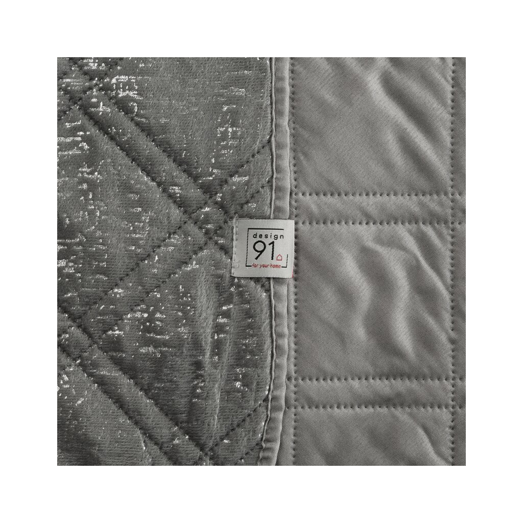 Velurový prehoz, vyrobený metódou horúceho lisovania so striebornou potlačou Šírka: 200 cm, Dĺžka: 220 cm, Farba: oceľová, Hmotnosť: 150 GSM, Zloženie: Materiál: 100% polyester