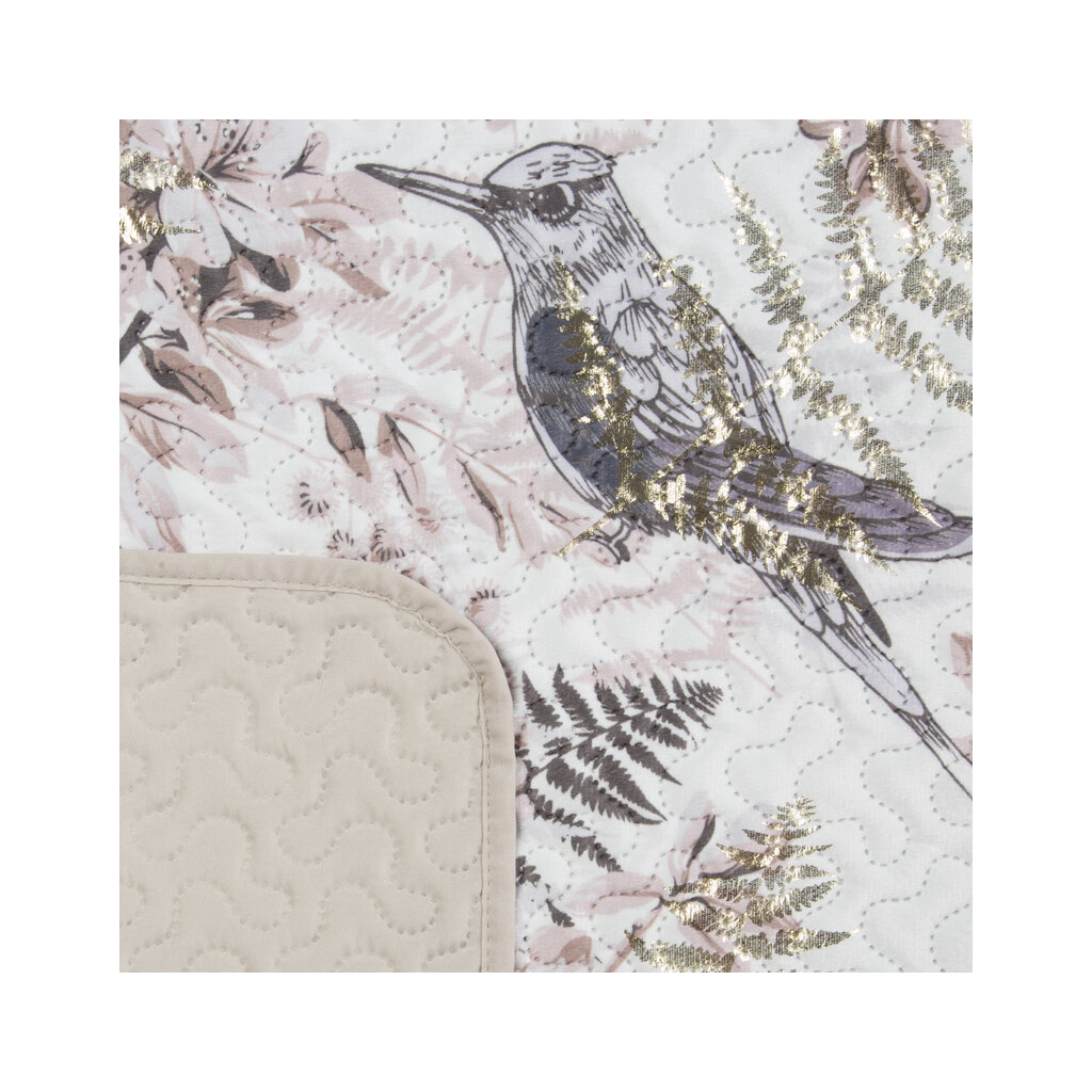 Velúrový prehoz s potlačou, vyrobený metódou horúceho lisovania Šírka: 170 cm, Dĺžka: 210 cm, Farba: biela, Hmotnosť: 150+100+70 GSM, Zloženie: Materiál: 100% polyester