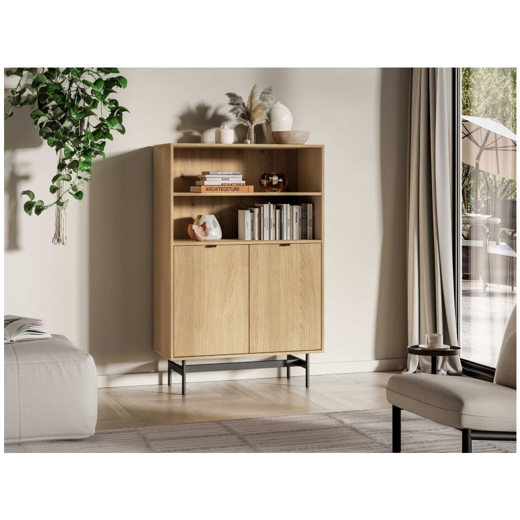 Regál SORENY 03 je navrhnutý pre moderné interiéry, v ktorých sa spája elegantný dizajn, jednoduchosť a funkčnosť. Dekor dub Mavelie Natural prináša do priestoru prirodzený a teplý vzhľad, zatiaľ čo minimalistická forma dodáva nábytku nadčasový charakter. Nábytok je postavený na ľahkej kovovej konštrukcii, ktorá mu dodáva vzdušnosť a moderný vzhľad. Praktickosť nábytku zvyšujú funkčné riešenia, ako je systém push-to-open a pánty s tichým dovieraním, ktoré zabezpečujú pohodlné a tiché používanie. Regál je určená na zariadenie obývacej izby, vďaka čomu umožňuje vytvoriť jednotný a harmonický interiér v celom byte.