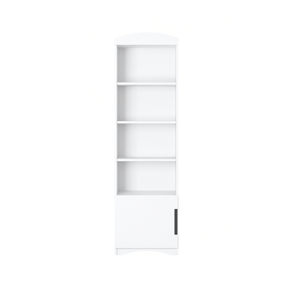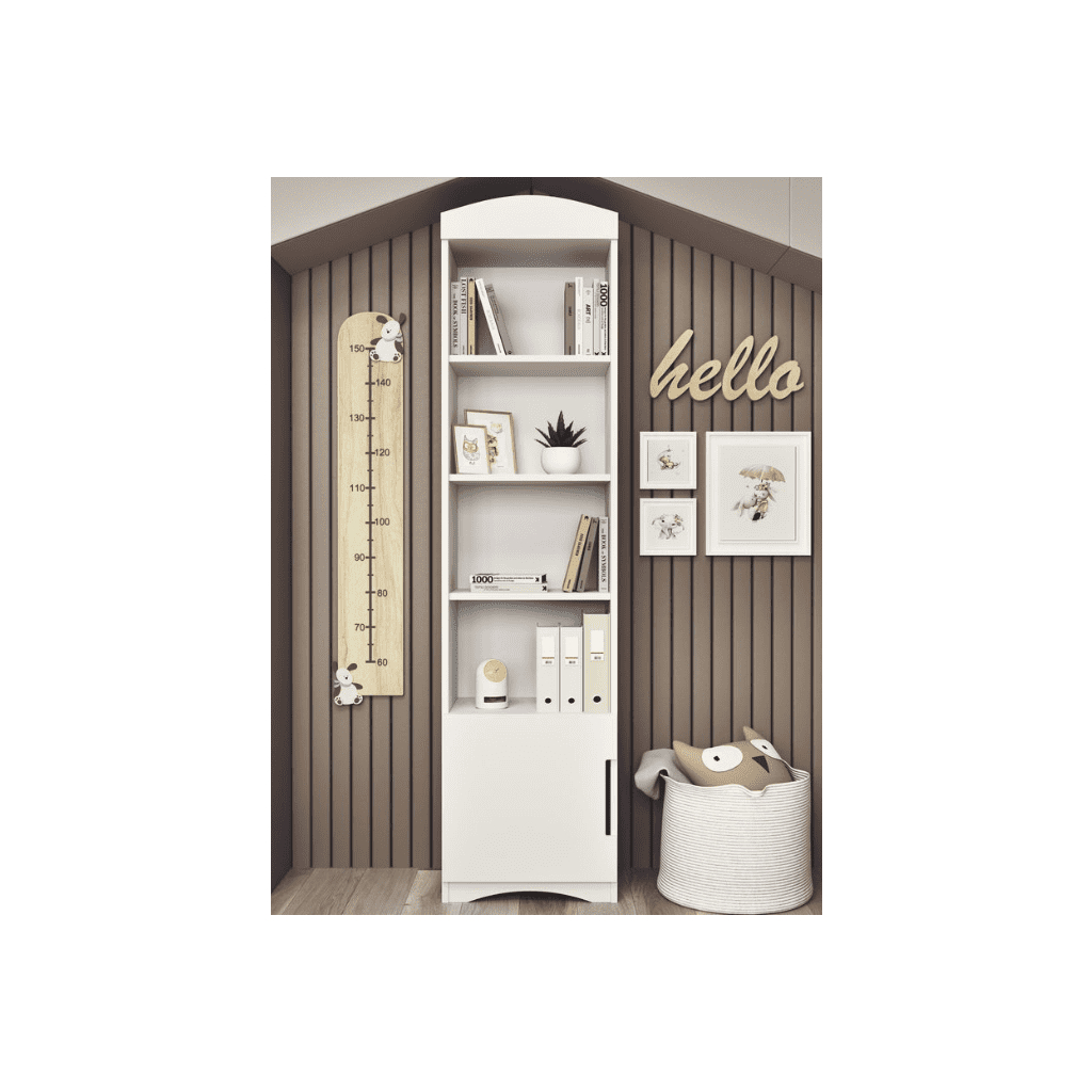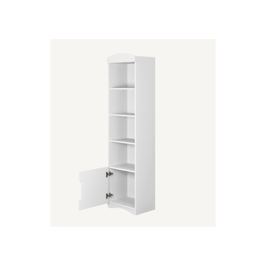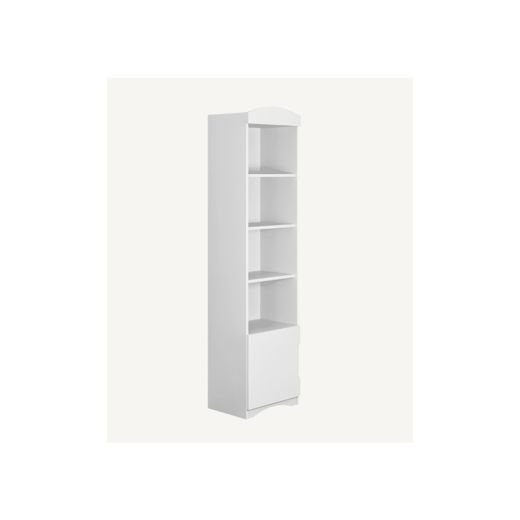Úzky regál Classic je ideálnym doplnkom do detskej izby, pracovne či obývacej miestnosti. Vďaka svojmu štíhlemu tvaru a univerzálnemu bielemu prevedeniu pôsobí elegantne, moderne a zároveň nezaberá veľa miesta. Regál prináša prehľadný úložný priestor, ktorý pomáha udržiavať poriadok a zároveň dodáva interiéru sviežosť a svetlosť. Regál je vybavený štyrmi otvorenými policami a spodnou uzatvárateľnou skrinkou, ktorá je ideálna na uloženie vecí, ktoré nemusia byť na očiach. Otvorené police zase ponúkajú priestor pre knihy, hračky, dekorácie či školské potreby. Takto sa regál stáva nielen praktickým, ale aj estetickým prvkom v izbe.