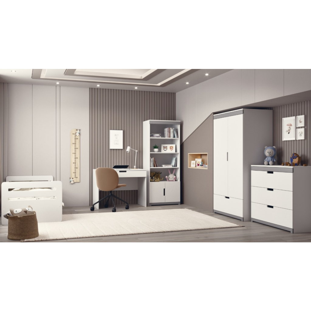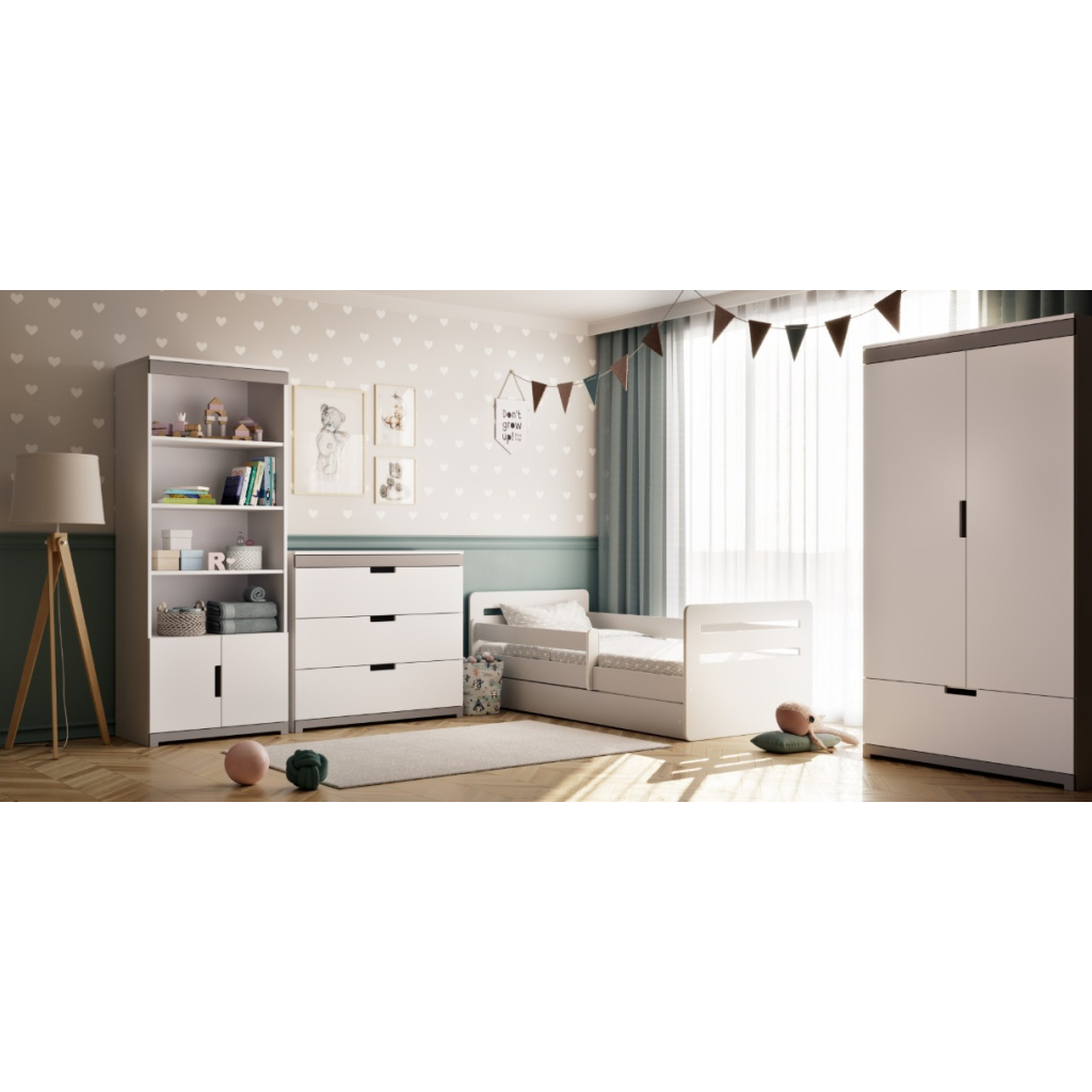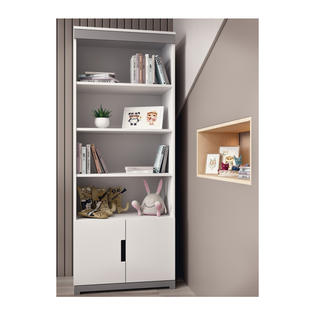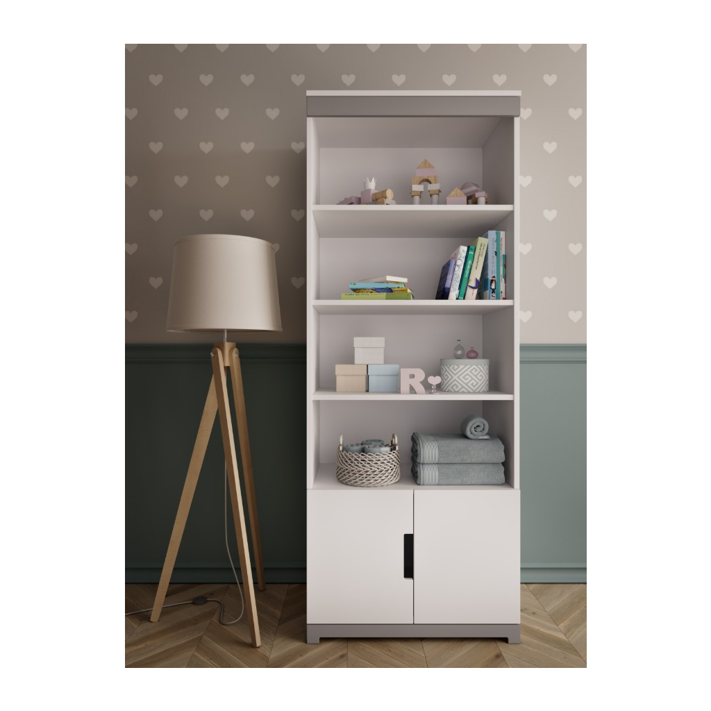 Vysoký regál TOMI je ideálnou voľbou pre všetkých, ktorí hľadajú jednoduchosť, praktickosť a pohodlie. Nábytok bol navrhnutý s dôrazom na detail, aby vytváral príjemnú a útulnú atmosféru v miestnosti takú, do ktorej sa budete vždy radi vracať. Moderný dizajn robí z nábytku TOMI skvelé riešenie najmä do izby tínedžera. Praktické ergonomické výrezy zabezpečujú pohodlné otváranie. Pre vyššiu bezpečnosť je nábytok vybavený špeciálnymi nástennými konzolami, ktoré zvyšujú jeho stabilitu. Regál je priestranný s policou a skrinkami. Pre zvýšenie bezpečnosti sa odporúča regál upevniť aj k stene.