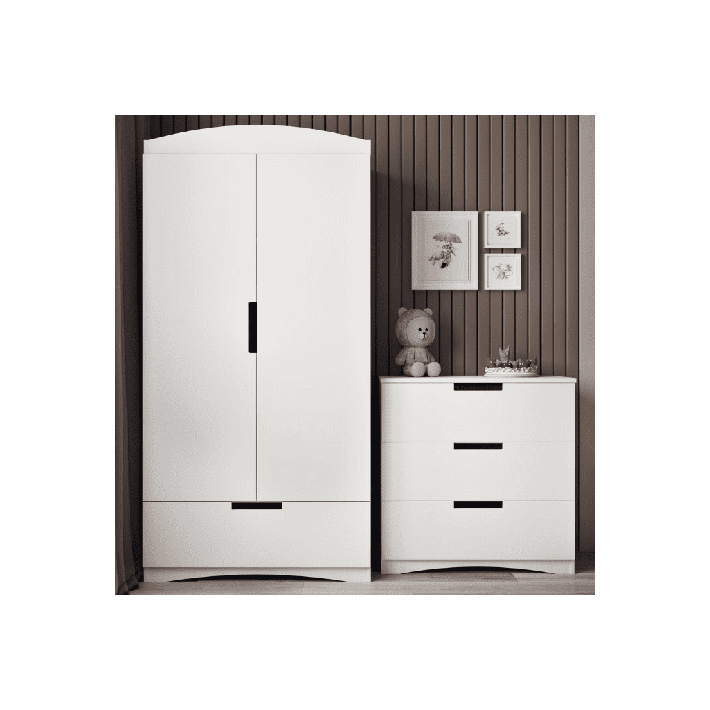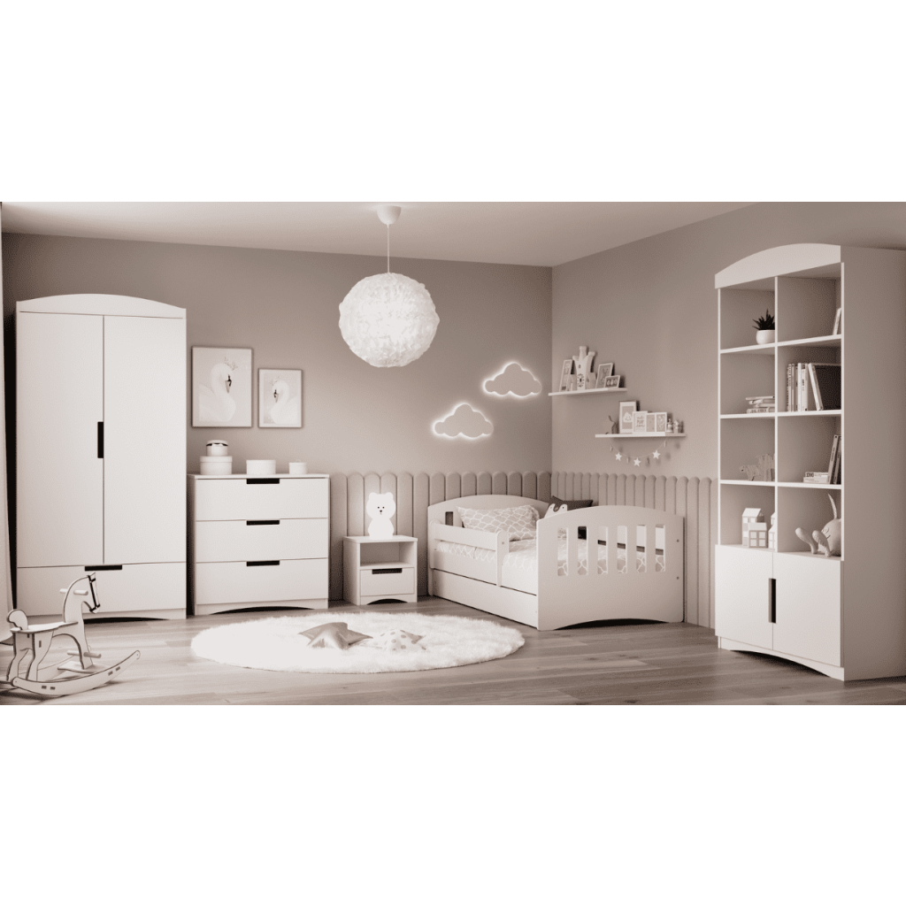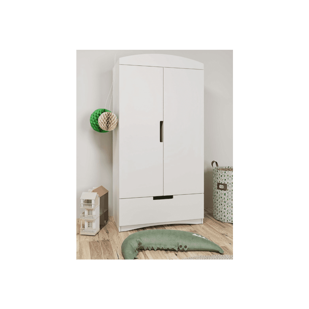 Šatníková skriňa CLASSIC je nadčasový kus nábytku, ktorý spája praktickosť, kvalitné spracovanie a elegantný dizajn. Vďaka svojej jednoduchej, čistej línii a bielej farbe krásne dopĺňa akýkoľvek detskú izbu. Je navrhnutá tak, aby poskytovala dostatok úložného priestoru a zároveň pôsobila vzdušne a harmonicky. Skriňa disponuje dvomi uzatvárateľnými dvierkami a spodnou zásuvkou, ktorá ponúka ideálne miesto na oblečenie, doplnky alebo posteľnú bielizeň. Vo vnútri nájdete kombináciu políc a závesnej tyče, vďaka čomu je možné uložiť aj vešiakové oblečenie, aj poskladané kúsky. Takto sa v izbe udržiava poriadok, ktorý poteší nielen deti, ale aj rodičov.