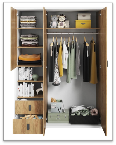 - Ak nie sme ľudia typu „vlk samotár“, rýchlo zistíme, že malé úložné priestory sú síce fajn, ale nestačia. Každý člen domácnosti potrebuje miesto na skladovanie, napr. letné veci v zime, zimné veci v lete, topánky, šiltovka, dovolenkový klobúk, župan, šály a rukavice, plavky, plesové šaty, oblek, atď.