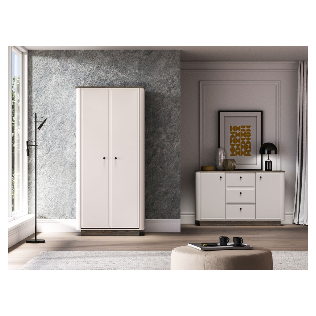 Objavte nábytok OLIVAVI, ktorý kombinuje eleganciu, štýl a funkčnosť. Táto kolekcia je ideálna do obývacích izieb aj spální, pričom jej dizajn okamžite zaujme jemne zaoblenými prechodmi medzi korpusom a čelami nábytku. Kontrastné kombinácie dekorov klasický kašmírový a tmavo tónovaný dub Windmill dodávajú nábytku moderný a luxusný vzhľad. Vkusné kovové úchytky pridávajú nábytku eleganciu a sofistikovanosť. S nábytkom získate do svojho interiéru noblesu, štýlovosť a vysokú kvalitu, ktorá pozdvihne každý priestor. Šatníková skriňa OLIVAVI 08 je priestranná dvojdverová, má dve police a jednu závesnú tyč na oblečenie.