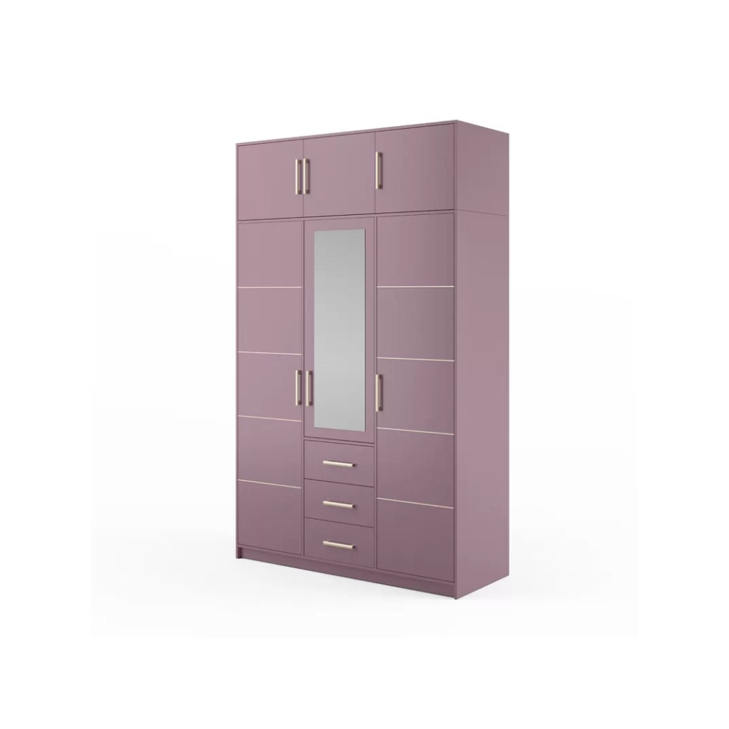 Priestranná šatníková skriňa BALI D3 s nadstavcom je kúskom extravagancie a dizajnu. Milovník tohto štýlu si príde na svoje. Šatníková skriňa Bali má zásuvky, vešiakovú tyč a police. Štýlové rukoväte v zlatej farbe v kombinácii so sviežou farbou výrazne vyniknú a zjednodušia prístup k uloženým predmetom. Skriňa je v peknej fialovej farbe. Prineste deťom radosť pri zariaďovaní detskej, ktorú potrebujete oživiť.